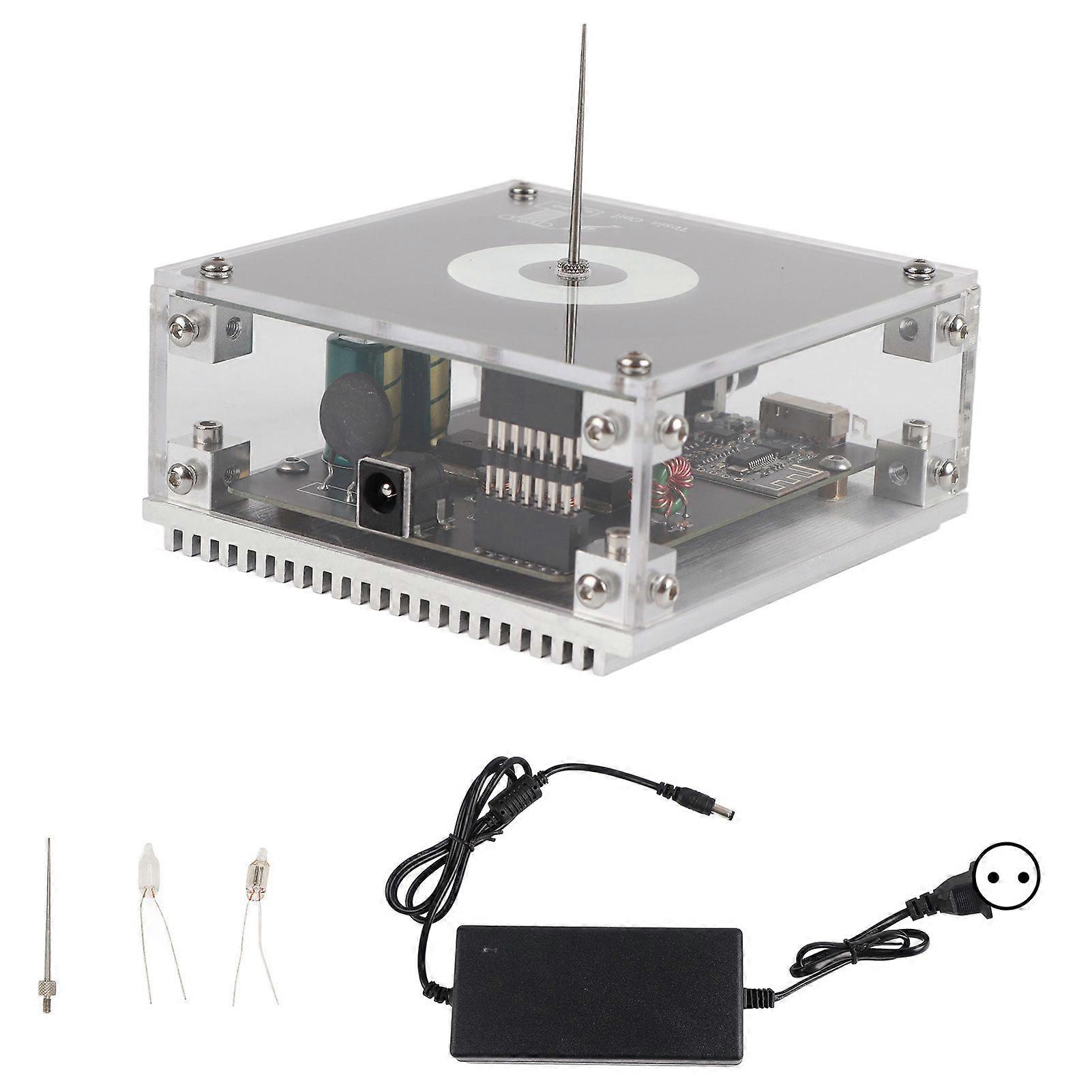 Feature:1. Multi Functions: Arc generator has wireless transmission and speaker function to light up neon lights and various bubbles, perfect for people learning the mysteries of science and physics.2. Good Sound Quality: When plugged in, it will play amazing melody, the quality of playing music is better than curved plasma speakers, jumping to the rhythm of the music.3. High Safety: The arc of the wireless transmission experiment model can be touched at will, with only a slight feeling and temperature, don't worry, use it with confidence.4. Easy to Use: The wireless transmission experiment model requires no audio cable connection, and when plugged in, it will present an amazing sparkling melody.5. Wide Applications: Music Tesla coil arc can be widely used in physics teaching, scientific experiments, electronic competitions, graduation projects, birthday gifts, etc.Specification:Item Type: Music Tesla Coil ArcProduct Material: PCB,Acrylic,Aluminum AlloyColor: BlackArc Length: 0-10cm/0-3.94inch (Adjustment by RotatingSwitch)Power: 0-100W.Package List:1 x Arc Generator1 x Adapter1 x Discharge Needle2 x Small Neon LampNote:1. Not suitable for people with electronic medical devices.2. Do not touch the Tesla while working.3. Please do not use this Tesla in an environment with flammable and explosive materials or closed coils and large sized metals.
