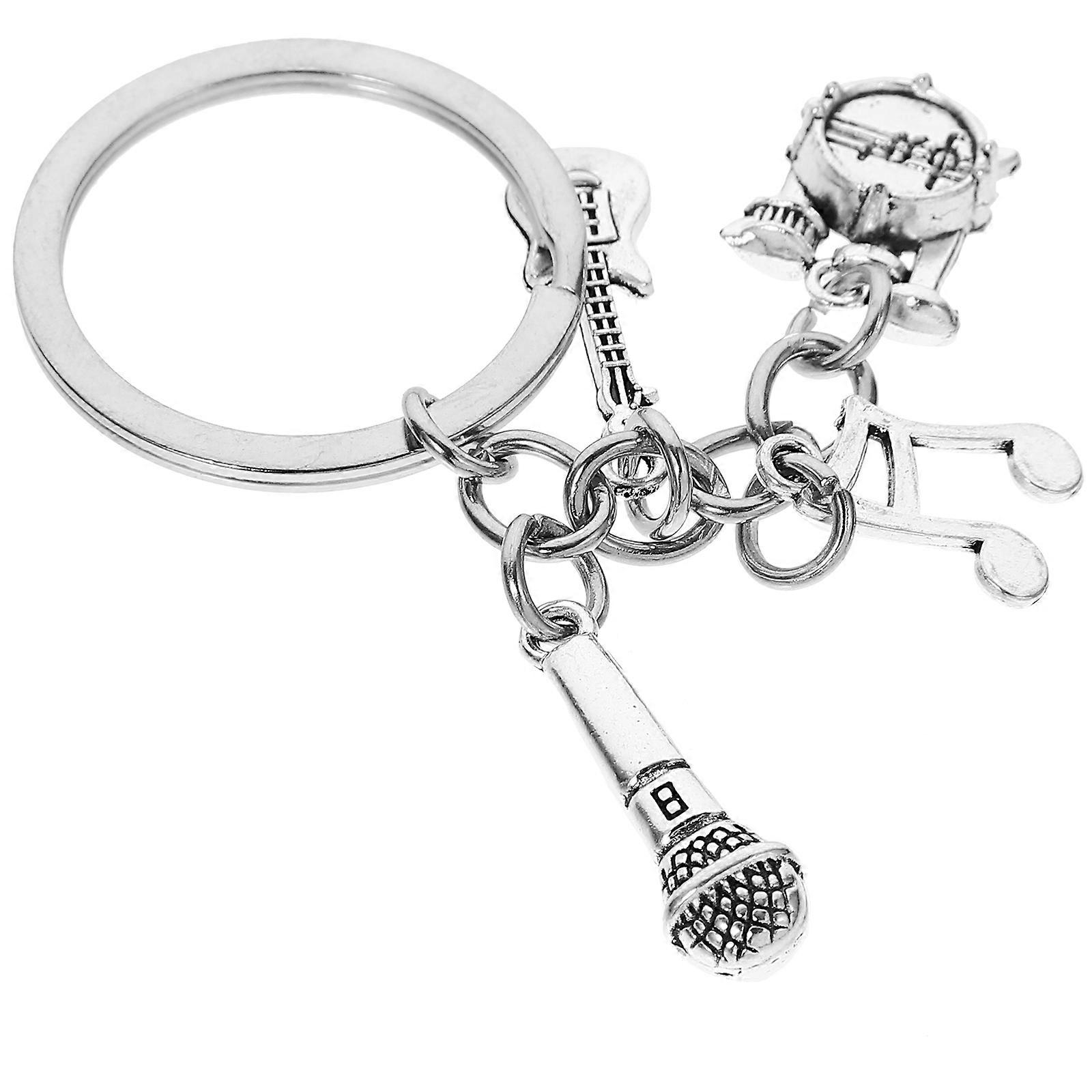 Music Note Pendant Keychain Relatives Music Instrument Keychain Silver Mini Bass Guitar 1Pack