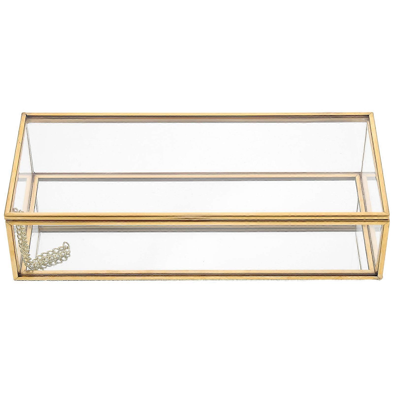 Vintage Glass Jewelry Display Box with Sturdy Alloy Frame Dustproof & Elegant Storage Organizer for Earrings and Accessories, Perfect for Home,