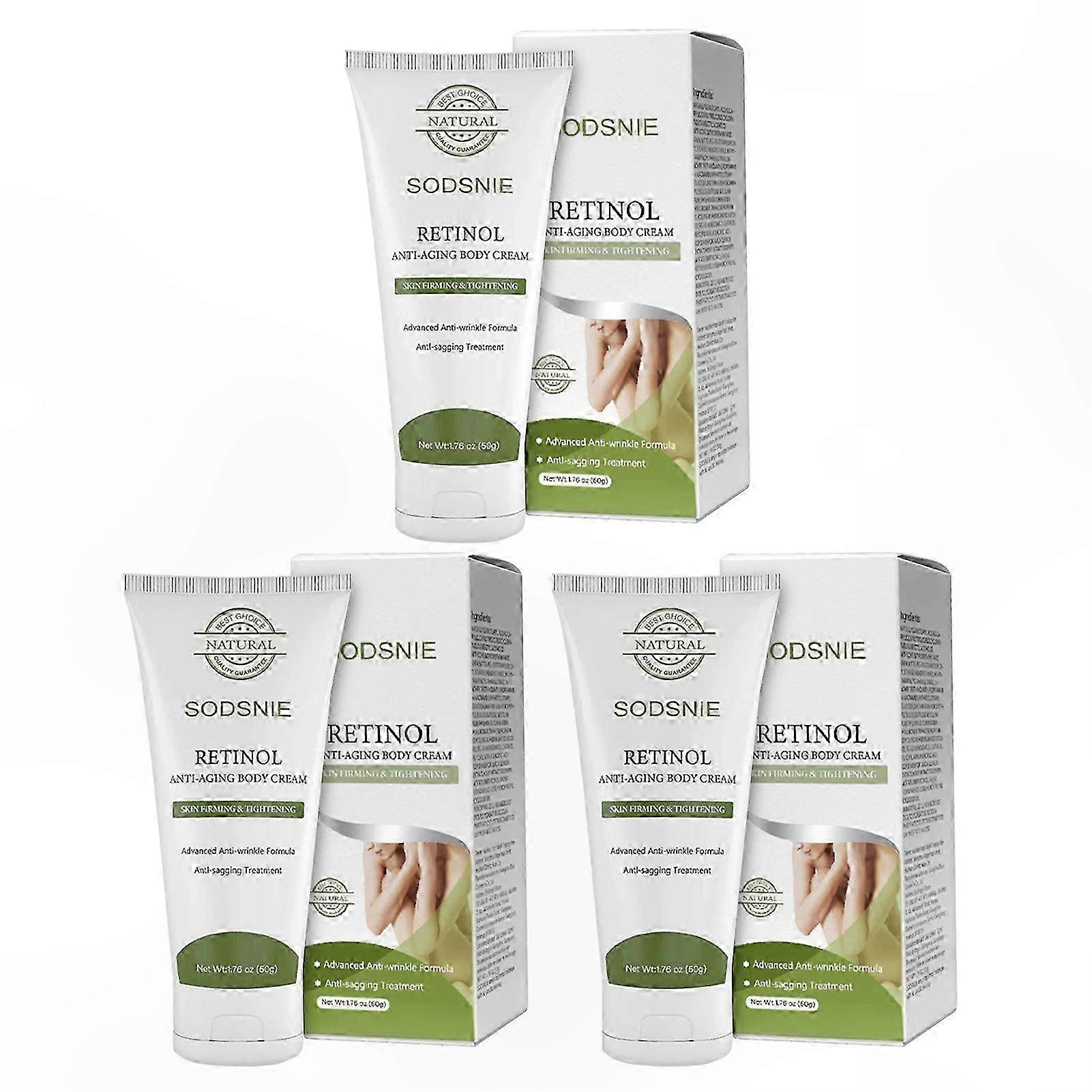 Features: Deeply regenerates moisture, helps prevent dryness and peeling, and improves skin elasticity. Helps even skin tone, reduce dullness, and promote clear, radiant skin. This body cream contains anti-aging ingredients that help penetrate the skin, support cell renewal, and provide advanced care for wrinkles or sagging skin on the body. Helps repair and strengthen the skin’s natural barrier, nourishing skin from within. Provides anti-aging benefits to support youthful-looking, healthy skin. Helps replenish moisture, support collagen, promote skin renewal, improve firmness, and refine skin texture. Deeply hydrates to help prevent dryness and flakiness, evens skin tone, and reduces dullness. Notice: 1. Actual color may vary slightly due to lighting effects. 2. Please allow 1-3 cm deviation due to manual measurement. Material: 50g Package List: 1/2/3 pcs Retinol Anti-Aging Body Cream