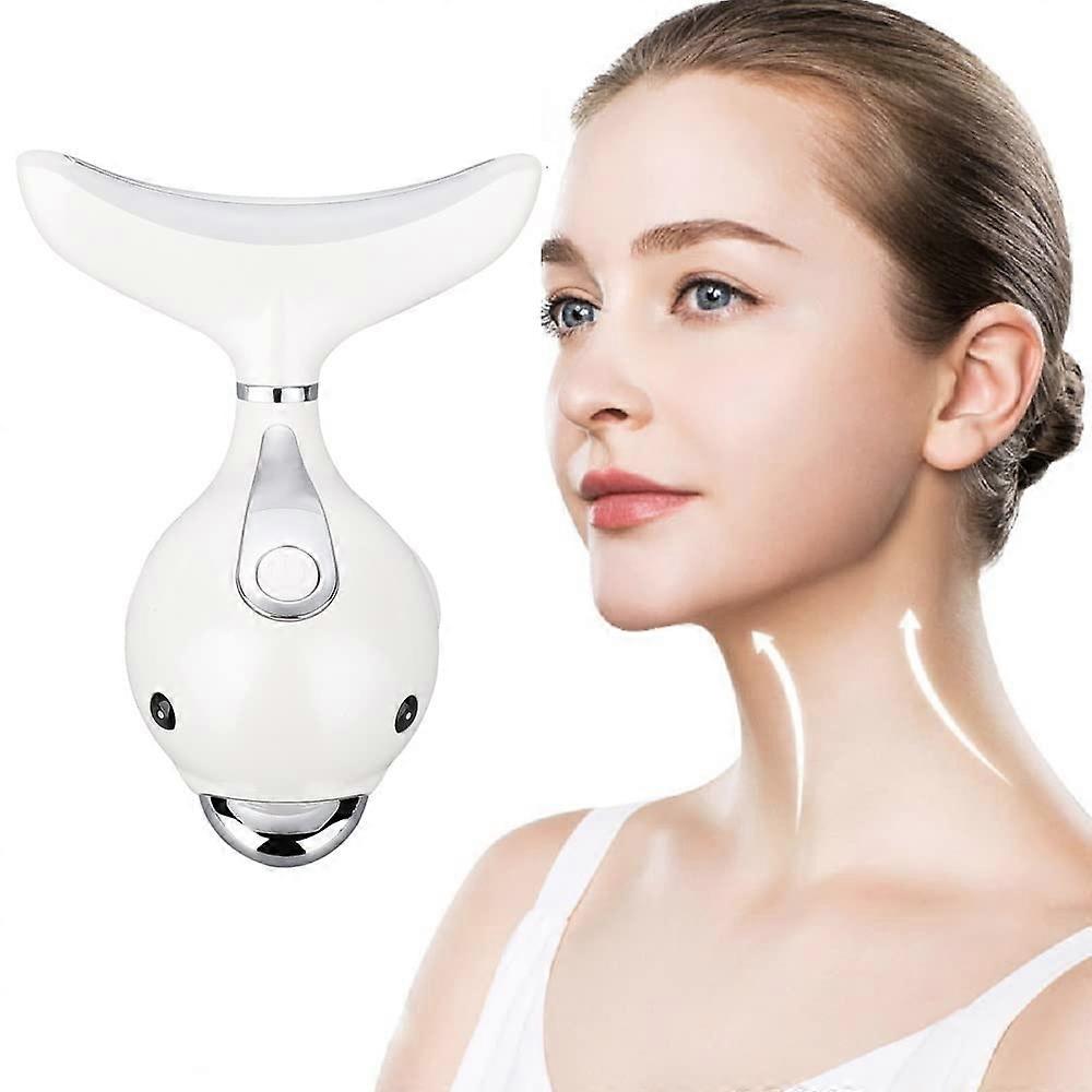 skin regeneration beauty device, suitable for face and neck. Based on triple acting LED, thermal and vibration technology. Lifts and firms loose skin