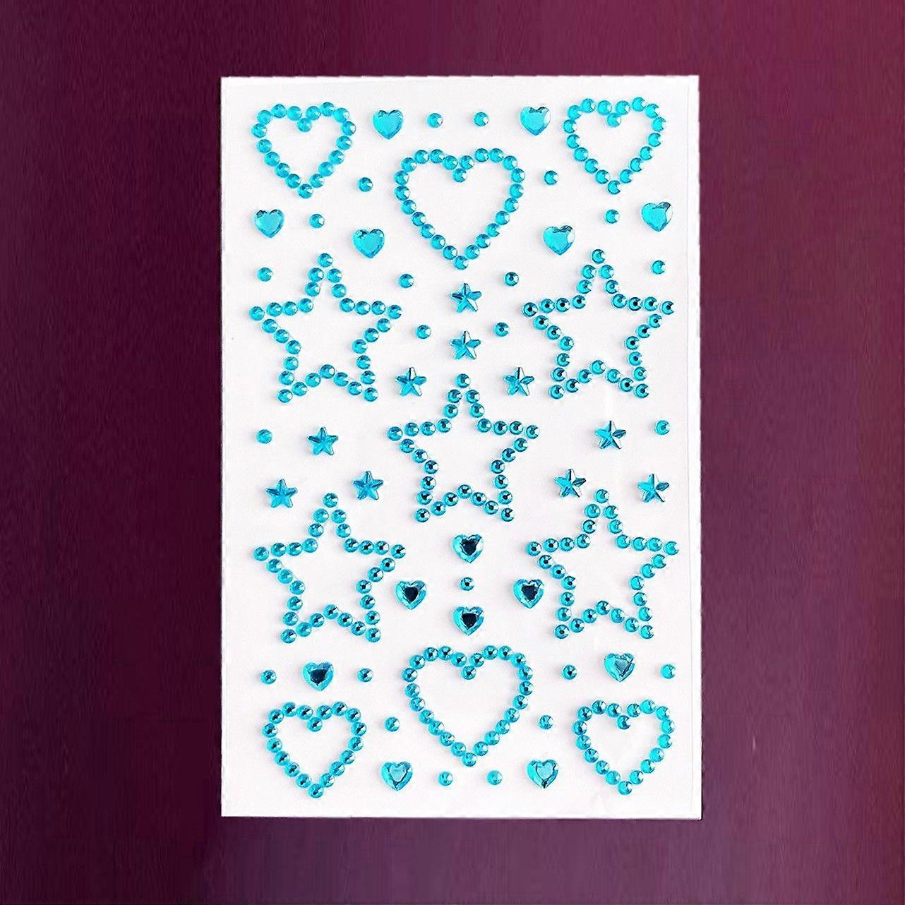 5 Sheets Self-Adhesive Rhinestone Stickers for Face Hair Body - Heart Star Shaped Decal for Valentine's Day Party Makeup