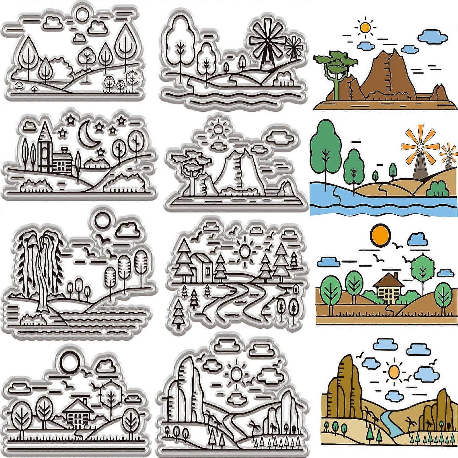 Landscape Background Clear Rubber Stamps Tree House Bird Mountain Vintage Reusable Seals Transparent Silicone Sealing Stamp for DIY Scrapbooking Journ