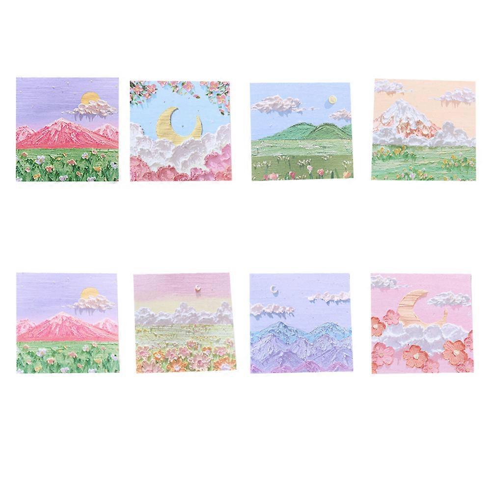 Landscape Painting Adhesive Notes 8Pcs Mixed Style Memo Pads Ideal For Students Office Workers Families Reminder