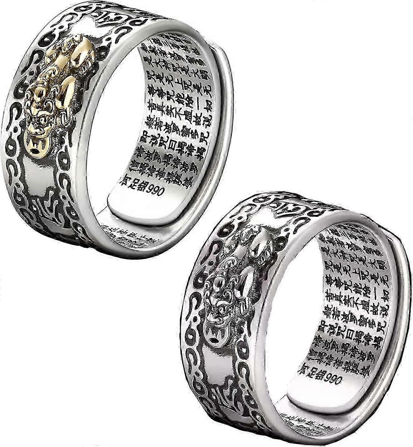 Feng Shui Pixiu Mantra Ring, Buddhist Good Luck Amulet Mantra Double Protection Anillo Pixiu Ring Gift For Men Women