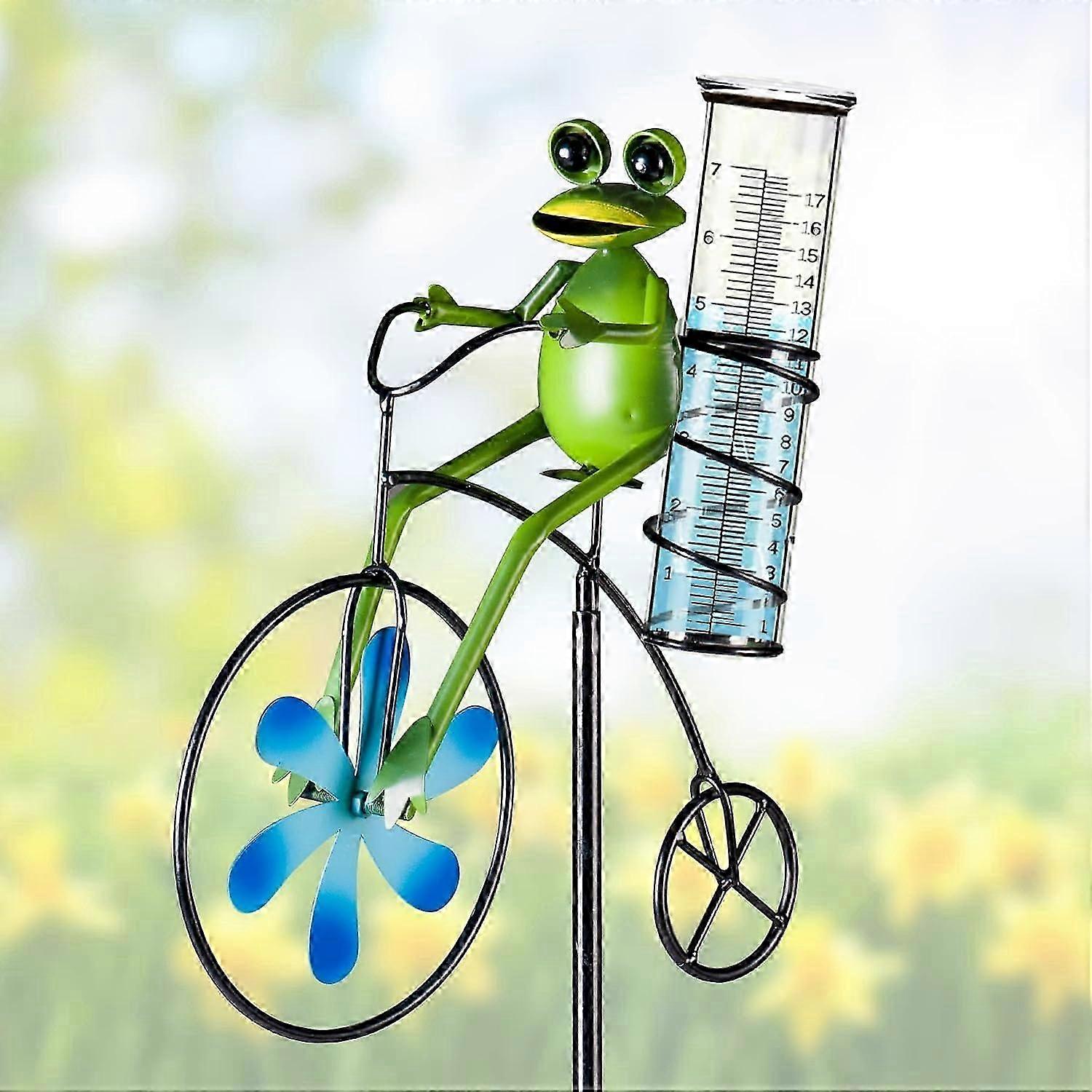 Frog with Windmill Rain Gauge Playful Garden Ornament with Detachable Glass Tube for Easy Cleaning