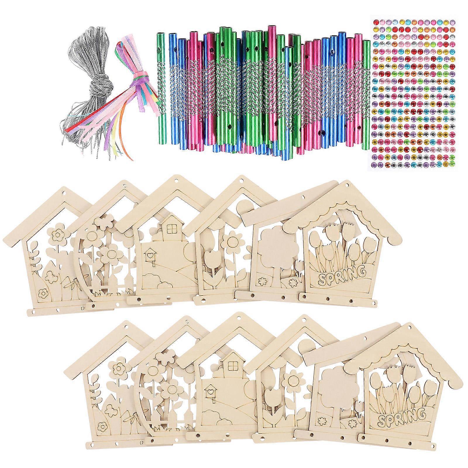 Wind Chime Outdoors Unfinished Wood Wind Chime Garden Parties Rhinestone Stickers 4.7×4.7×0.1in 1 Set