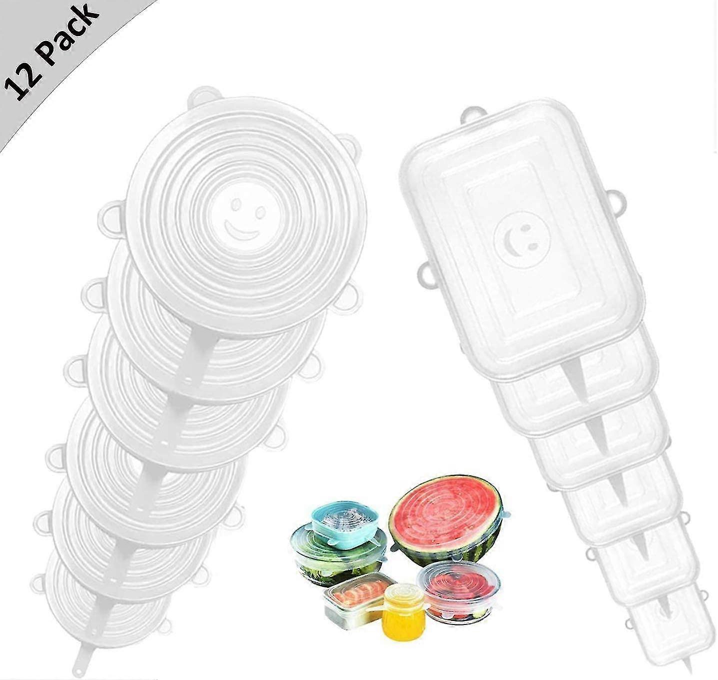 Food Grade Silicone Lid, 12pcs Reusable Square And Round Stretch Silicone Lids For Storing Fruit, Cups, Glass, Bowl - Reduce Plastic Film