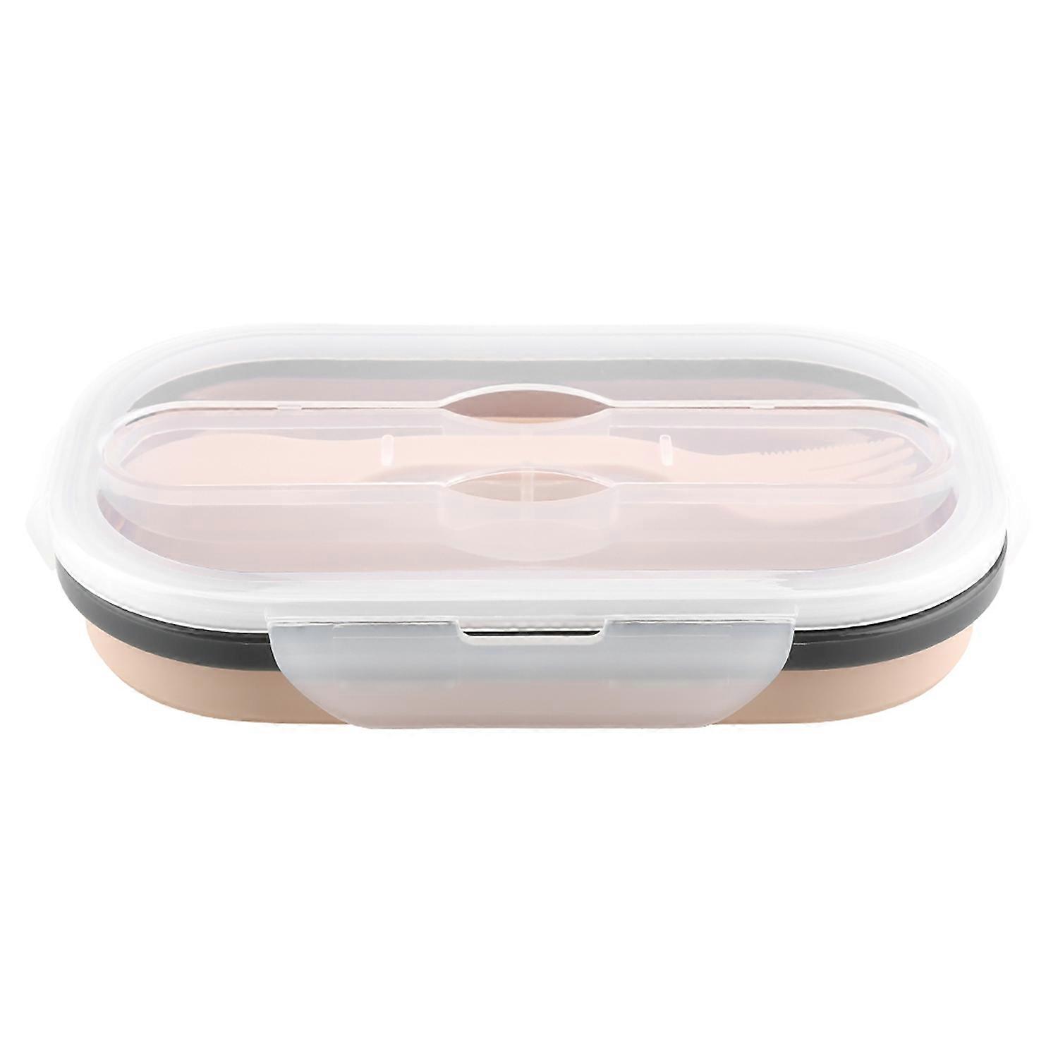 Food Grade Silicone Foldable Lunch Box Portable Rectangle Food Storage Container (Apricot)