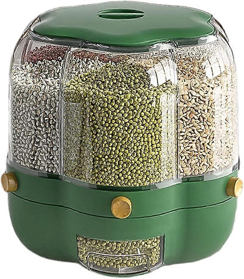 Food Grain Storage Container, Large Capacity, 6.5 L, 6-Grid Rotatable Travel Dispenser, Sealed Grains, Food Storage Box, Kitchen Storage