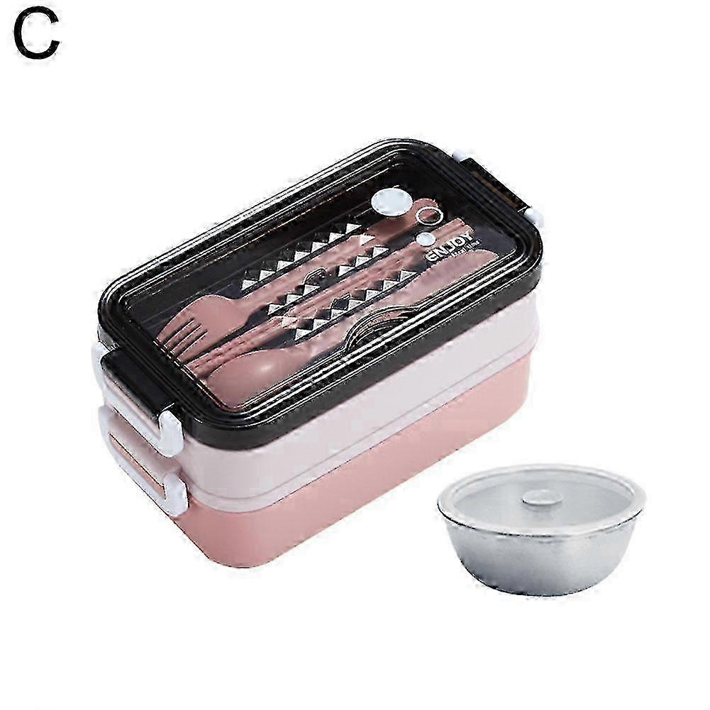 Stainless Steel Double-Layer Insulated Lunch Box With Tableware Set