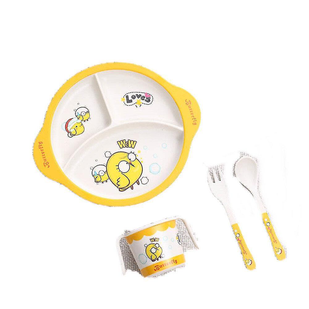 Dinnerware Sets 1set Cute Kids Tableware Set Eco-friendly Bamboo Cartoon Dinnerware With Cutlery Children Dinner Set