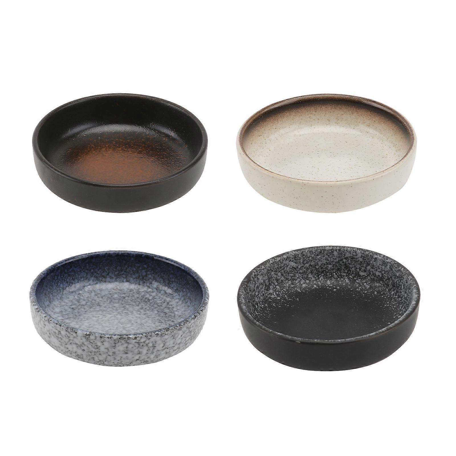 This is a set of 4pcs ethnic style dipping plates. Made of premium ceramic material, fine workmanship, smooth surface, small size, easy to clean and carry. Suitable for holding dipping sauces, minced ginger, garlic, vinegar, oil, salt, salad soy sauce, wasabi, chili oil and so on. Features - Color: Random color - Material: Ceramic - Size: 9x9x2.5cm/3.54x3.54x0.98in - Note: Random style. - Made of a material that can withstand hot, cold and acid mixtures. - Simple, clean design to even mixing. - It's great for dipping sweet and sour, mustard, and soy sauce. - Use these bowls for side dishes, desserts, appetizers, soups, recipes, condiments, etc. - Suitable for families, restaurants, food stores, dining , etc. Package list: 4 x sauce plates