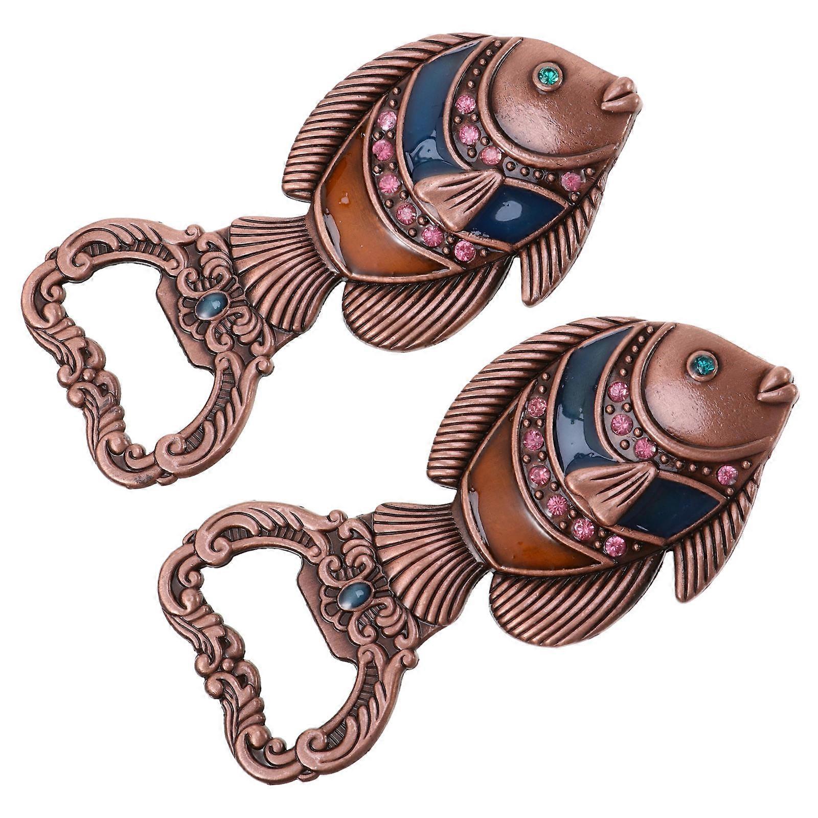 Cool Bottle Opener Fish Shape For Beverages 10X4.5cm Brown Alloy Opening 2Pcs
