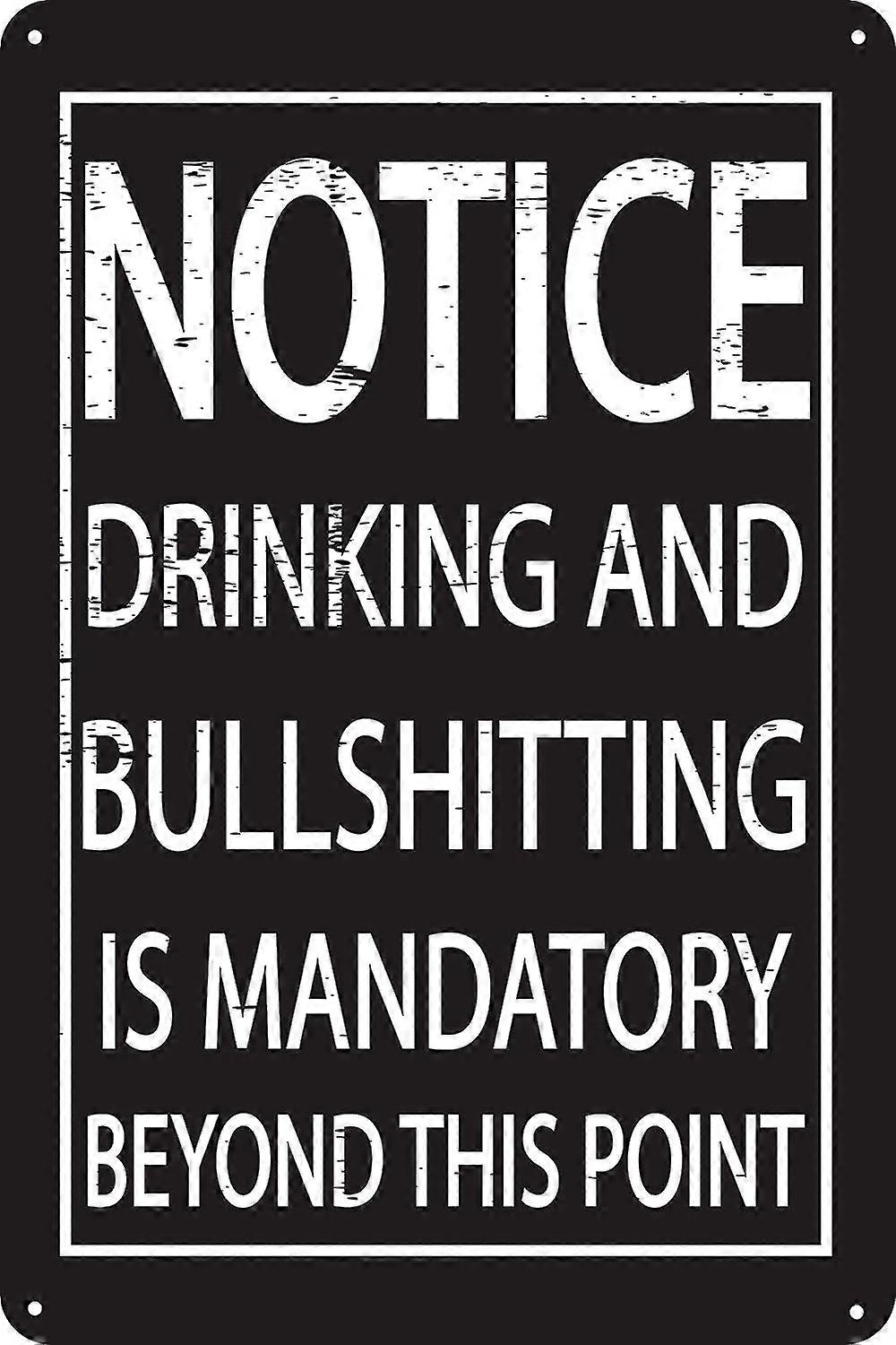 Drinking And Bullshitting Is Mandatory 12" x 8" Tin Notice Sign Garage Man Cave Game Room Home Bar Decor