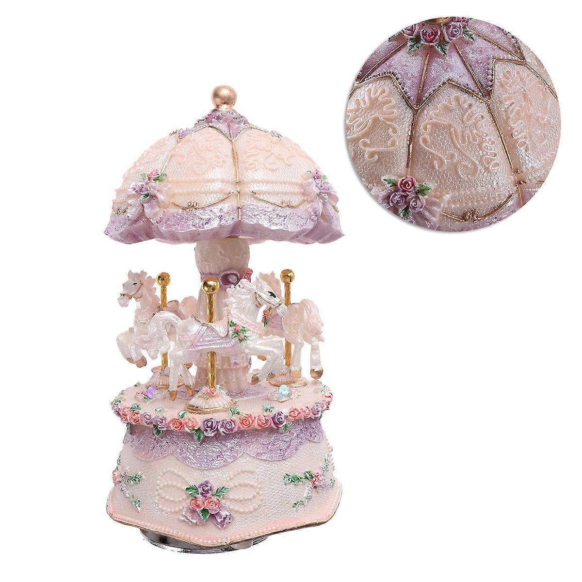 Horse Musical Box Carousel Natural Resin Color Change Led Light Rotating For Girls Room Desktop Adornment 1Pcs