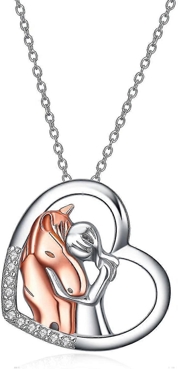 Horse Pendant Necklace Jewelry, 925 Silver Girls Emb Horse (horse With Girl Necklace)-