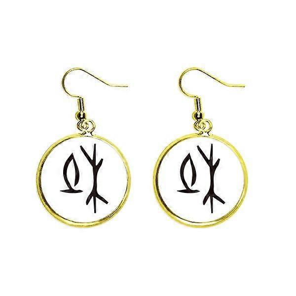 Bone Inscription Chinese Surname Character Du Ear Dangle Golden Drop Earring Jewelry Woman
