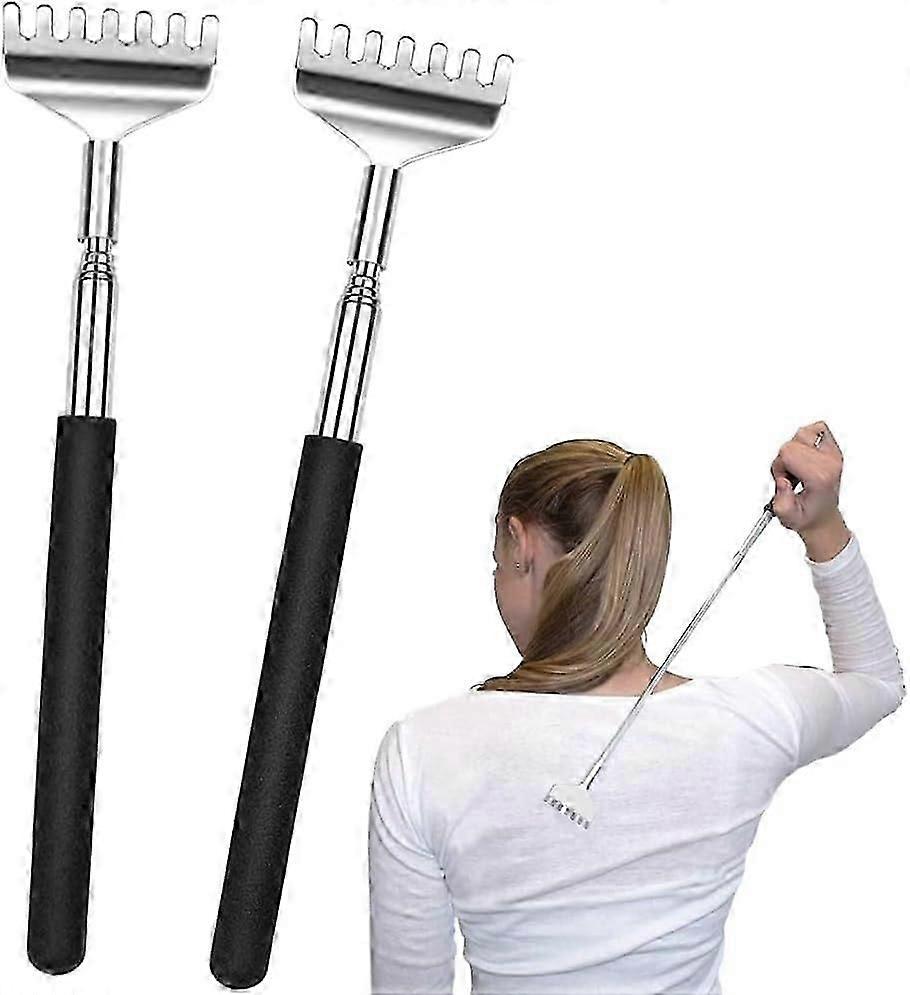 Pack of 2 back scratchers made of high-quality stainless steel, extendable up to 68 cm, telescopic metal back scratcher, for head and back