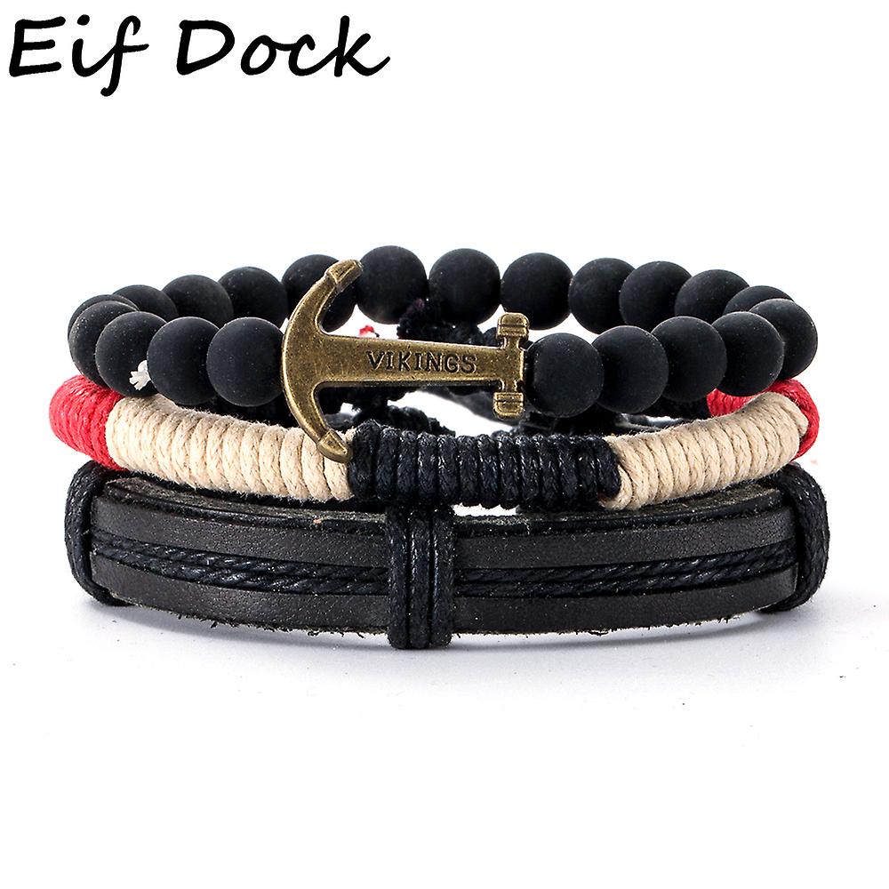 High Quality Men's Metal Bracelet Black Lava Beads Personality Leather Woven Anchor Leather Bracelet Rope Bracelet For Men Gift