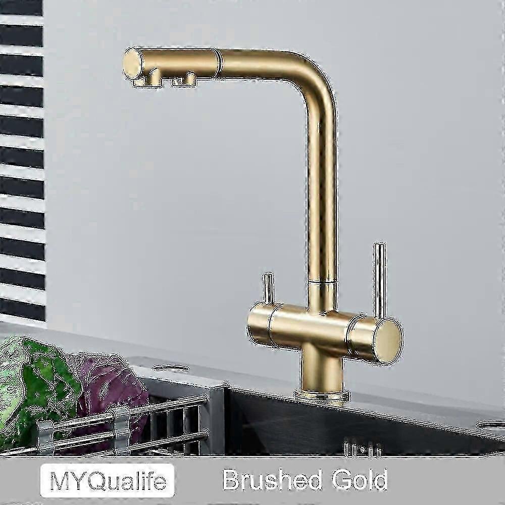 High qualityChrome Brass Pull Out Filtered Kitchen Faucet Dual Handle Hot Cold Drinking Water 3-way Filter Purification Mixer Taps
