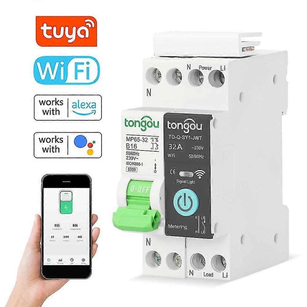 This is a intelligent circuit breaker, with this tool, you can achieve remotes control and viewing at any time from anywhere by Tuya APP on your mobilephone. There are 3 different timing modes for you to use: Timing mode, countdown mode and loop timing modes. This tool is compatible with Alexa and Google Home intelligent voice assistants to achieve voice control and free your hands. Two models optional, you can choose with metering model and without metering model according to your demands. Features: Premium Materials: The body of this circuit breaker is made of PA66 flaming retardant material, integrates manganese copper, high-performance chip module, and long-lasting motor system, makes it safety to use. Tuya APP Control: With this tool, you can achieve remotes control and viewing at any time from anywhere by Tuya APP on your mobilephone. Devices-Interlock Mode: With this tool, you can monitor the usage of all time equipment, you can use remotely control, timing control to make your home more intelligent. Three Timing Modes Device: There are 3 different timing modes for you to use: Timing mode, countdown mode and loop timing modes. More Intelligent Scenarios: The timing mode can be used before you go home from get off work, you can set the time to turn on the air conditioner and set other equipment in advance. The countdown mode can be used after you fall asleep, such as turning off the lights after 15 minutes. The loop timing mode can be used before waking up or after going to work. You can set to turn on the lights at 6:30 and turn off the lights at 9:30. Voice Control: This tool is compatible with Alexa and Google Home intelligent voice assistants to achieve voice control and free your hands. Two Models Optional: You can choose with metering model and without metering model according to your demands. With Metering Function: Automatic Monitoring: In your mobilephone, you can set the switch status of the equipment in different scenarios, and monitor the real-time situation of the load electrical appliances. Data Record & View Functions: Real-time monitoring electricity consumption. Support view load current, voltage, power in real time, record (year, month, day, hour) electricity consumption in different time periods. Specifications: Name: Circuit Breaker Material: PA66 Type: black with metering function, white without metering function (optional) Rated current: 1P-10A, 1P-16A, 1P-25A, 1P-32A (optional) Protocol: Wifi (Default) Poles description: 1P+N (N pole Pass-through) Breaking capacity: 6kA Item size: 82 * 50 * 36mm / 3.23 * 1.97 * 1.42in Package size: 93 * 40 * 80mm / 3.66 * 1.57 * 3.15in Package weight: 260g / 9.17ounce Packing List: 1 * Circuit Breaker