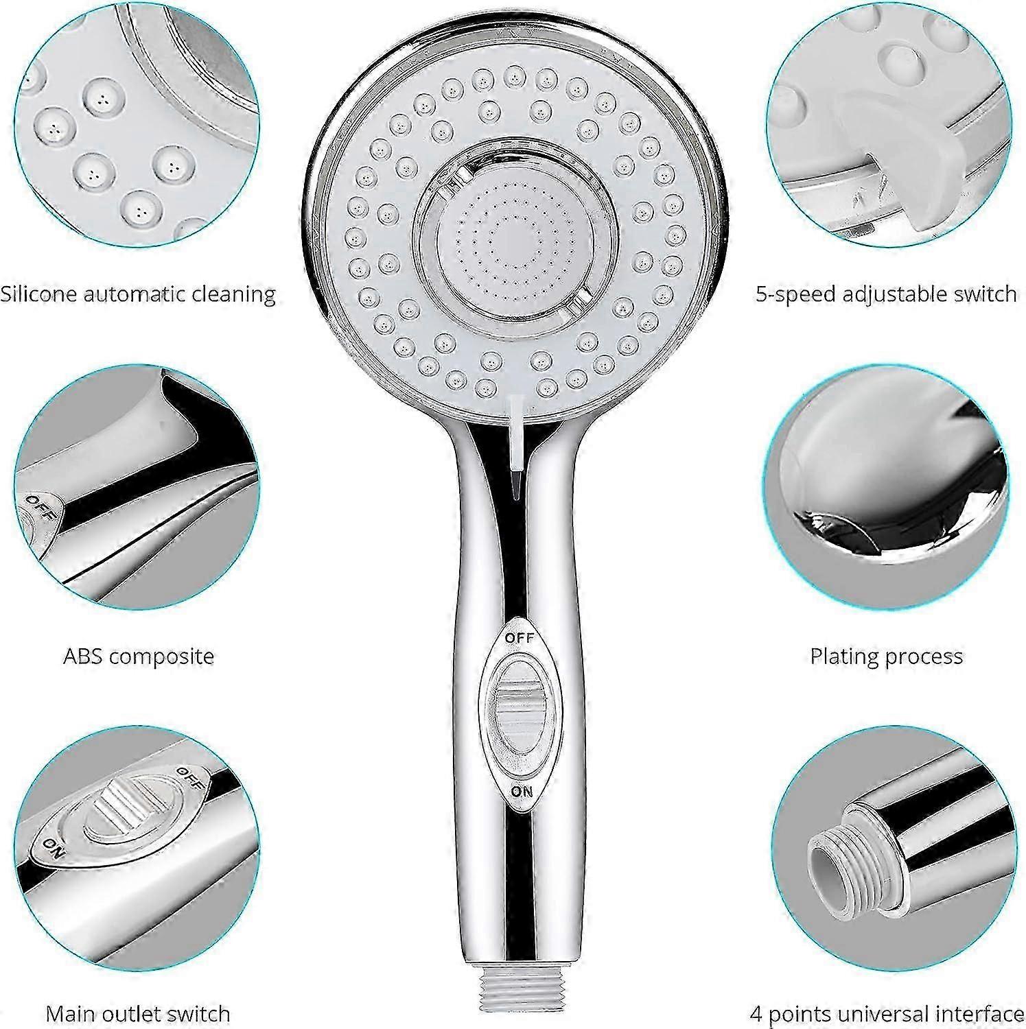 High Pressure Shower Head - 5 Water Saving Modes with Hand Shower Switch Button (Stainless Steel)