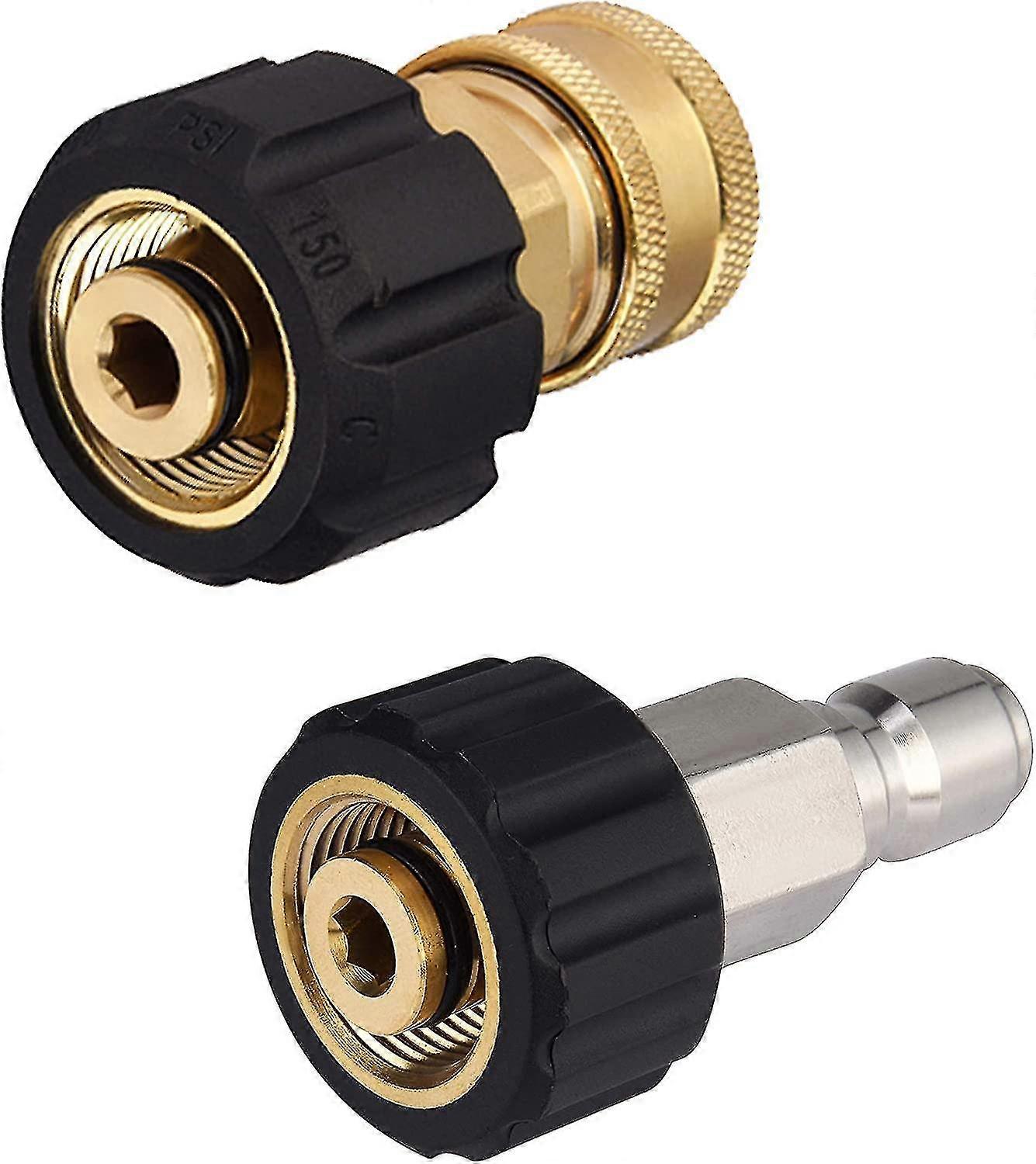Universal Quick Connect Kit, Metric M22 14/15mm Female + 3/8" Male, M22 14/15mm Female + 3/8" Female Pressure washer fittings apply to the universal gun, hose and pump. Pressure washer hose adapter provides quick and secure connections. Maximum working pressure: 5000 psi. Maximum temperature: 300C.