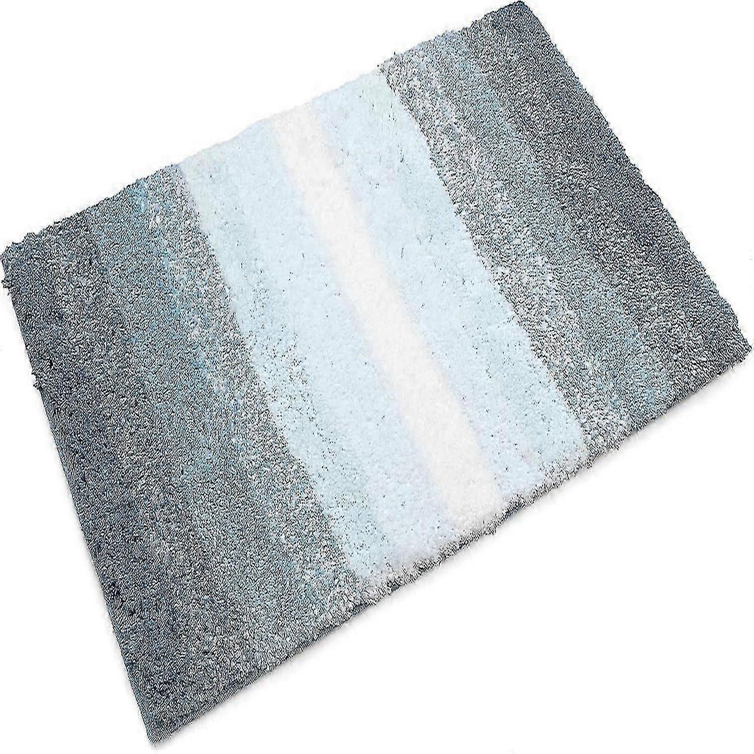 High-Density Soft Microfibre Striped Non-Slip Bath Mat 50 X 80 cms Bathroom Rug, Quick Dry Super Absorbent Shower Mat (Blue)