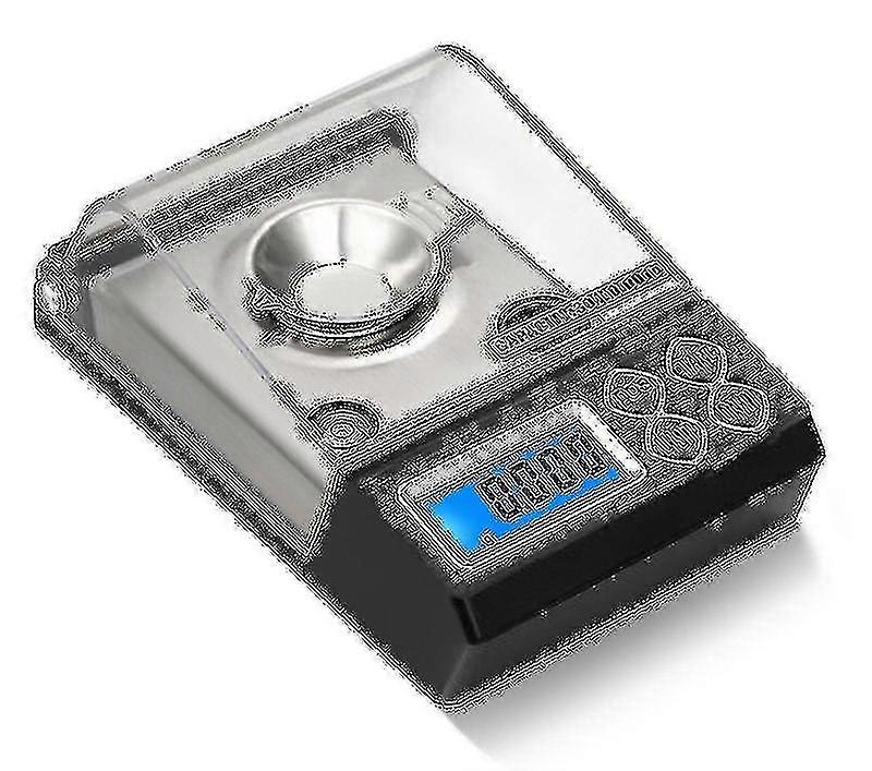 describe1. Main features: 50g / 0.001g2. Nominal value: 0.003g, repeatability: 0.002g, resolution: 0.001G (Key indicator: When the weight of the object with a load of 0.001G is greater than 0.003G or more, it can be identified by LCD.)3. Ruler size: 144x84.5x51mm4. LCD (blue backlight) size: 375x15.5mm5. Battery: 2xxAAA (not included)6. Low battery alarm: Lo7. Platform size: diameter 32mm (including stainless steel plate)2. Function buttons and descriptions1. ON/OFF (power on/off) Put the battery into the battery compartment of the scale, place the scale on a firm and flat table without wind and vibration, and keep the air bubble in the center of the black circle. Turning ON/OFF will show 88888 then 0.000and it's ready to work. Press ON/OFF to turn off the scale. If there is wind while weighing, lower the windshield.2.UNIT (unit switch button) PressUNITto switch weighing unit: g/oz/gn/ct/t/ozt Press and holdUNITkey for 4 seconds, all units are turned on, drive OZ flashes, then press PCS and long press Or turn off the machine, press UNIT to select the next drive,the g drive cannot be turned off. Press and hold [UNIT] for 4 seconds to restore the normal weighing state.3.TARE Touch [TARE] a to reset to zero.4. PCS (counting function) selects 25 samples (or 50, 75, 100 samples) In normal weighing state, put the sample on the scale, then press PCS for 4 seconds, the scale displays the sample weight, press PCS to confirm, the LCD will Displays PCS and samplevalues. You can put more items and the scale will show "PCS XXX" which is the number of items.3. Calibration function Turn on the balance, press and hold the ON/OFF button for 4 seconds, the balance will display 0 and then the weight value (if the capacity is 30g, 30000 will flash), put the 30g calibration weight on it and display PASS, then thecalibration is completed. (The product contains 20g calibration weight, you can press PCS to reduce the weight value to 20g, and then enter the 20g weight for calibration), when the calibration value flashes, press UNIT to increase the value, andpress the PCS key to decrease the value. According to the increase or decrease of 10G, we can choose the appropriate calibration weight, and the system will remember the last setting operation.Four. Automatic shutdown setting to turn off the scale, long press ON/OFF for 4 seconds to display 88888 and F1-1, press UNIT to select the correct startup time (0 to 5), 0 = no automatic shutdown, 1-5 means that the scale will Automatic shut-down. Ifnecessary, you can choose the right moment. After the setup is complete, the scale can work normally.Five, matters needing attention1. This product is a precision measuring instrument. Please pay attention to the operation2. Put the scale on a firm and flat table, no wind or vibration, keep the air bubble in the center of the black circle3. To use the scale in a windless environment, place the windshield in the wind.4. The scale should be more than 50cm away from the mobile phone.5. Please calibrate when the weight environment changes, even if the temperature changes by only 1 degree.6. FULL will be displayed when overloaded.7. Do not use this product in a humid environment. When not in use, remove the battery and store it in a cool, dry place.8. Do not use aggressive cleaners to clean the product.Quantity shipped: 1 piecePackage Contents: Only the above package contents, excluding other products.Size: 137x86x48mm(Reminder: The size is measured by hand, please allow 1-2 cm measurement error)Colour: Black(Due to different monitors and lighting effects, the actual color of the product may be slightly different from the picture color.)BAZHOU