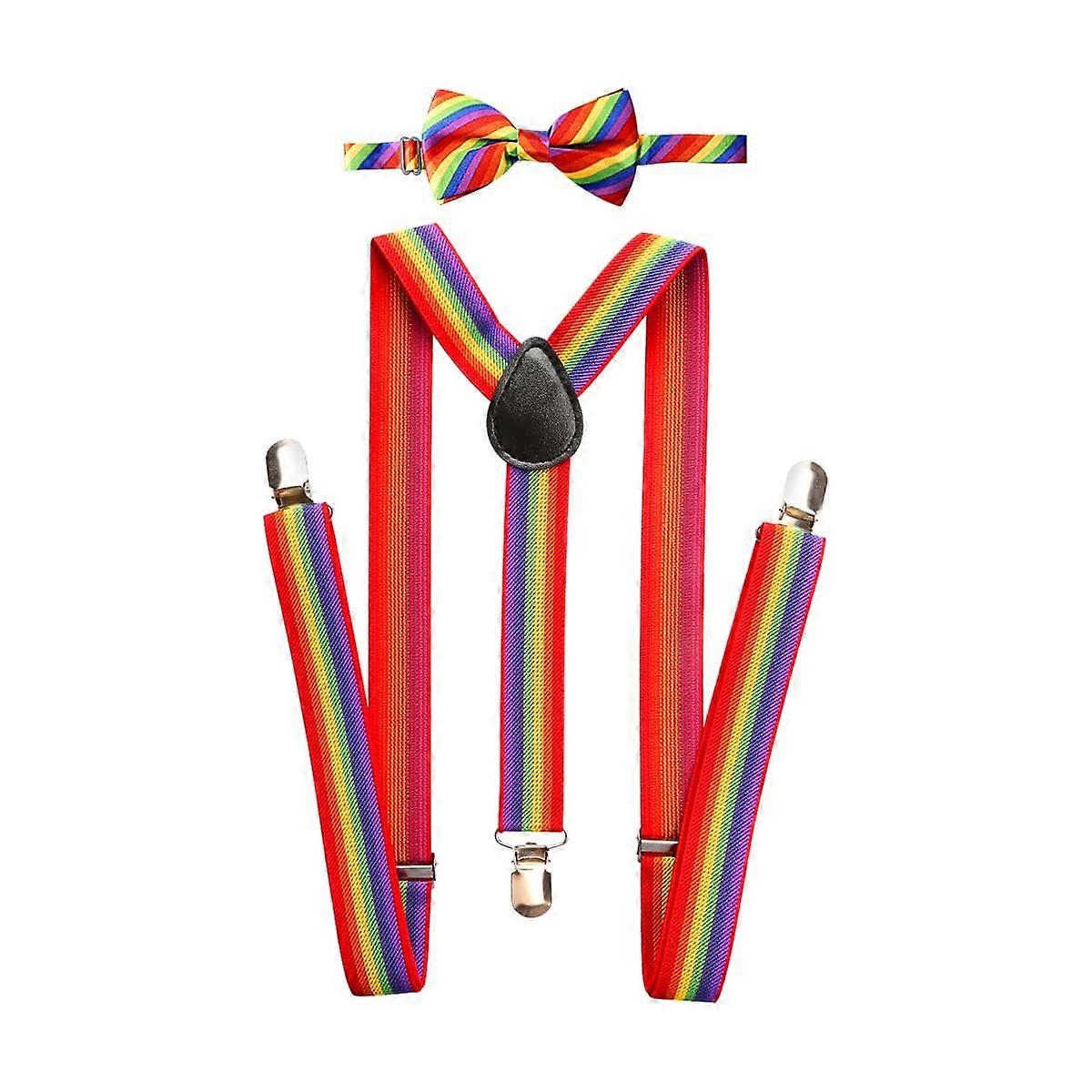 Adjustable Rainbow Bow Tie Y-Suspenders for Fancy Dress and Parties,Colourful Elastic Braces with Y-Clip, Unisex Style