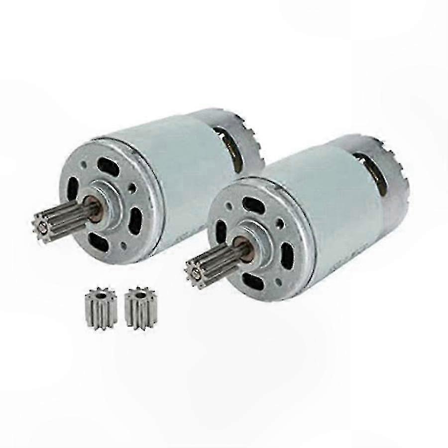 RS550 12V 35000 motor Commonly used in children's wheel applications Designed for car modification with standard size dimensions Motor is included in the package Specifications: Rated voltage: 12V Speed: 35000rpm Application: Compatible with most children's vehicles, directly replaces 550 motor Color: Silver Material: Metal Package Contents: 2 x 12V RS550 35000rpm motors 2 x 10-tooth 10mm gears 2 x 10-tooth 8.5mm gears Only the above package content, other products are not included Note: Light and display differences may cause slight color variation between the image and actual item. Measurement error allowance is +/- 1-3cm.