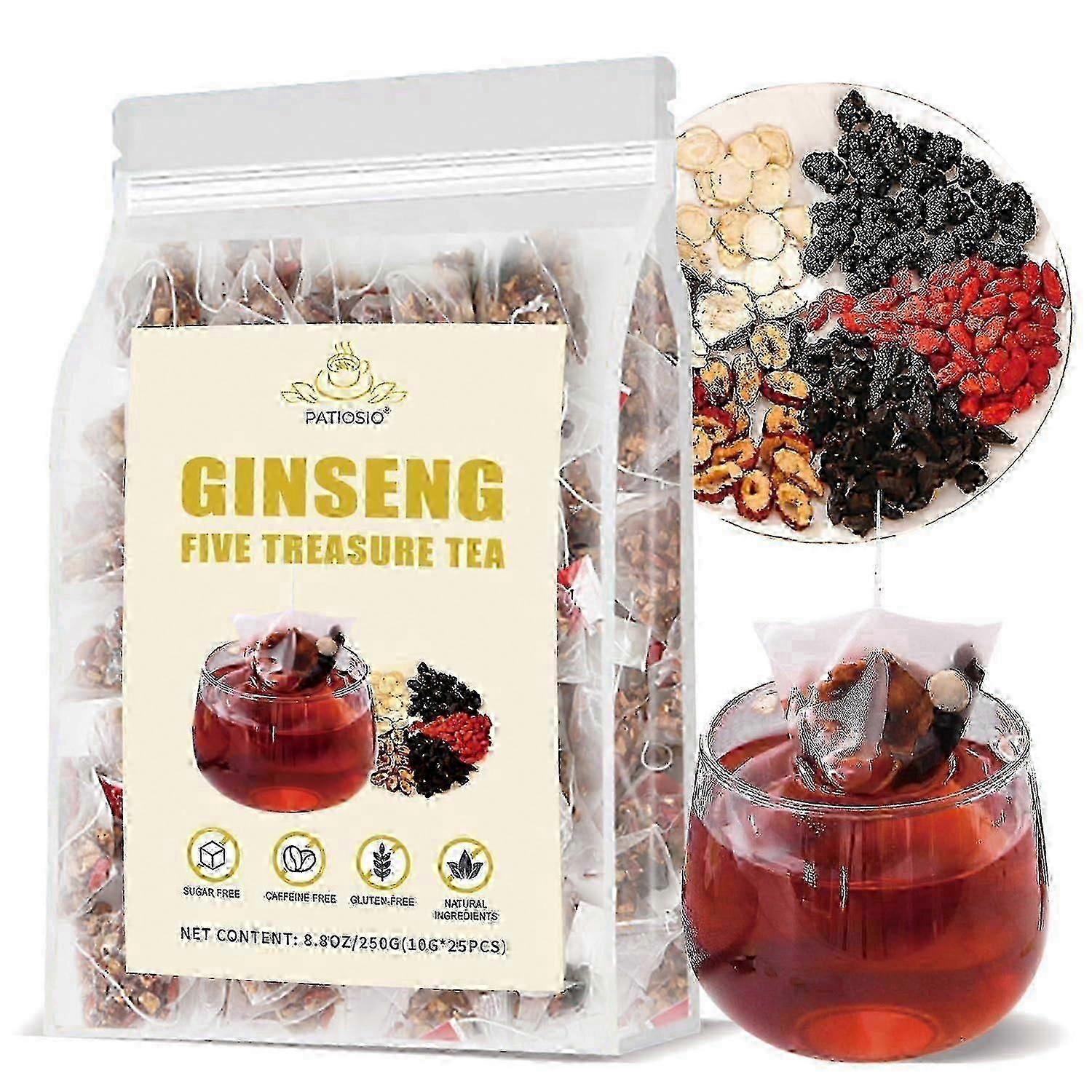 Ginseng Five Treasures Tea Kidney Tea- Wubao Tea Ginseng Six Treasure Tea, Ginseng Red Date Chinese Herbal Tea, Kidney Cleanse Detox Tea For Men Wom