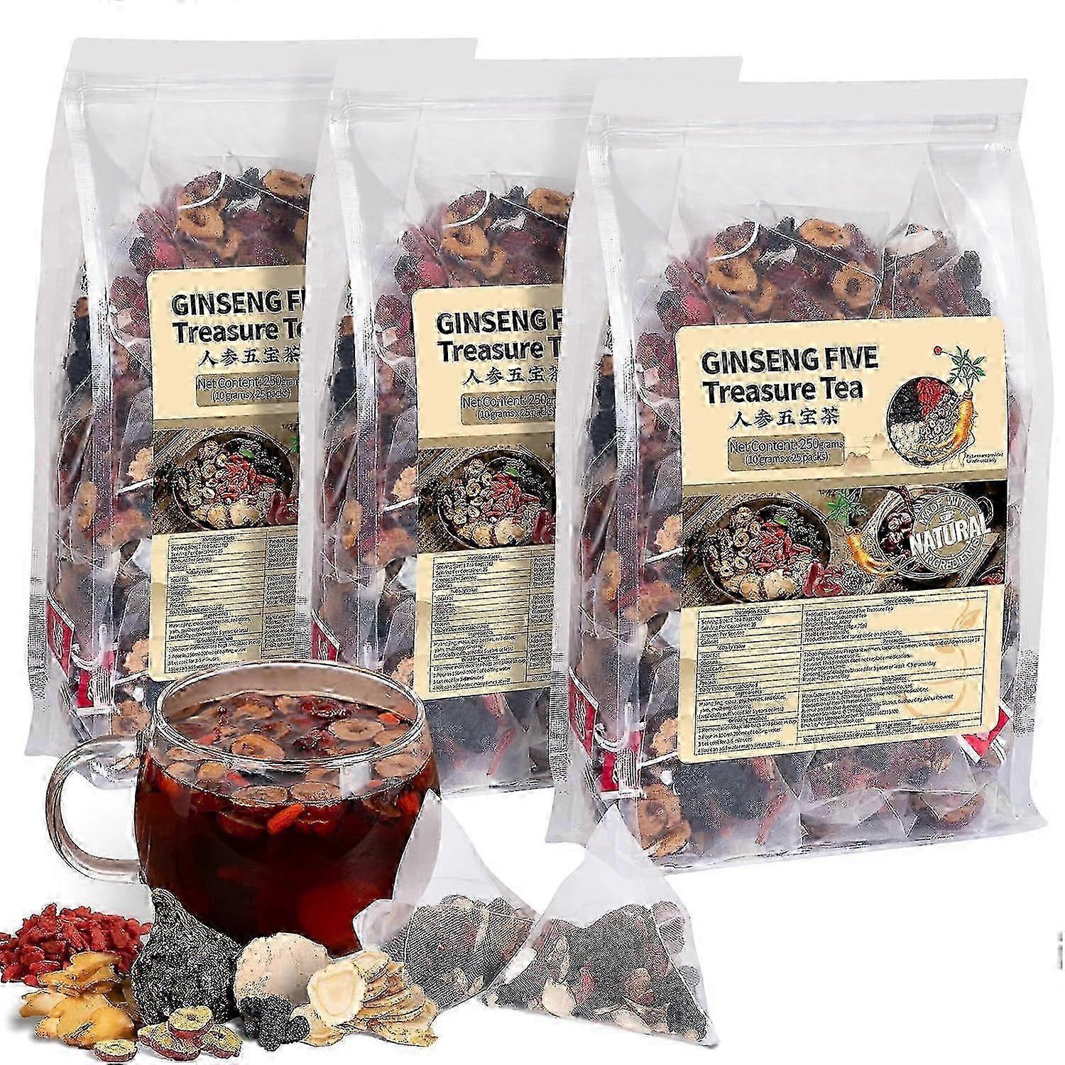 Ginseng Five Treasures Tea Kidney Tonifying Tea Chinese Herbal Tea Making Natural Organic Male and Female Kidneyand Detoxifying Tea Precious Medicinal