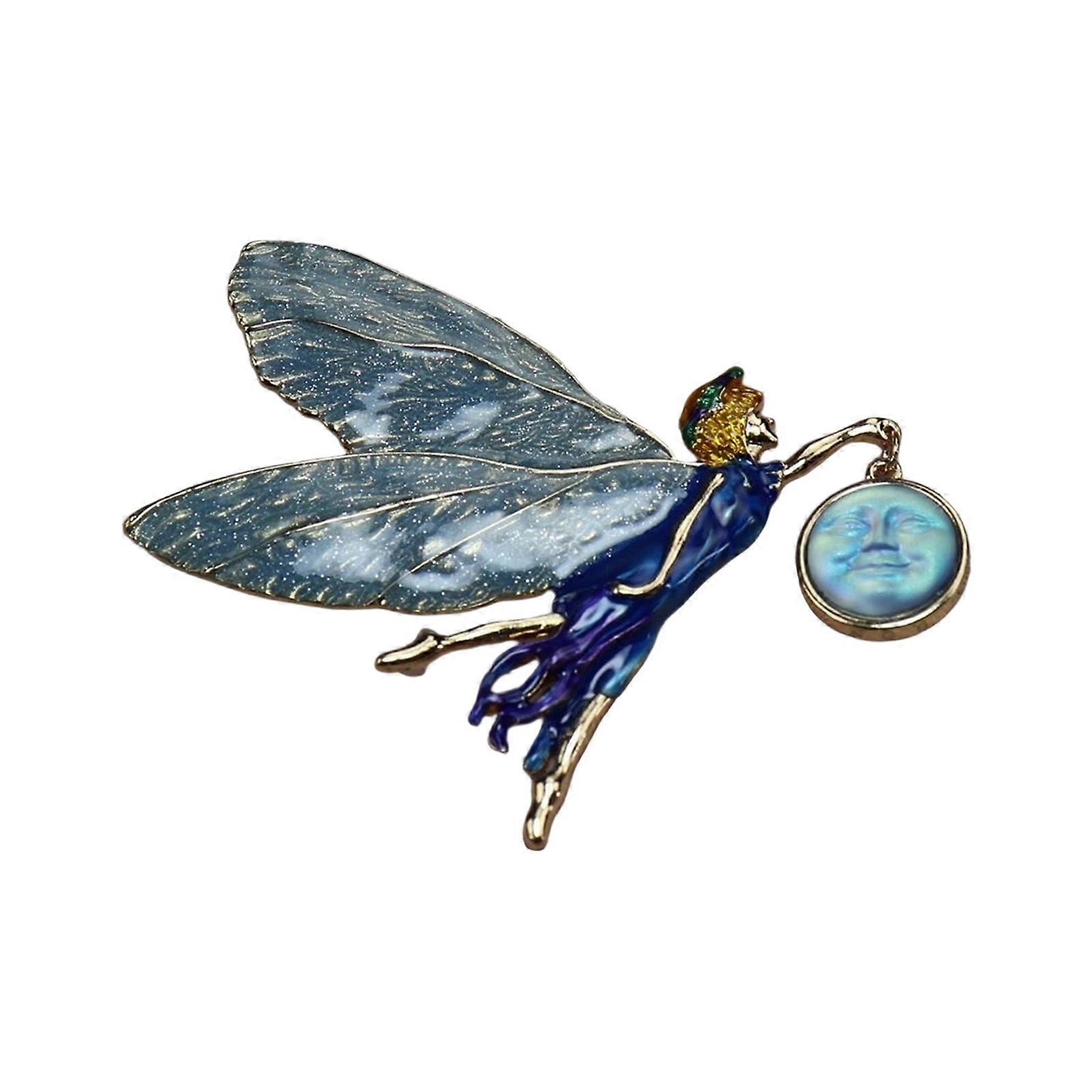 Attractive Wing Brooch Vintage Angel Girl Design Sturdy Alloy Jewelry Piece For Parties Or Daily Wear Sky Blue