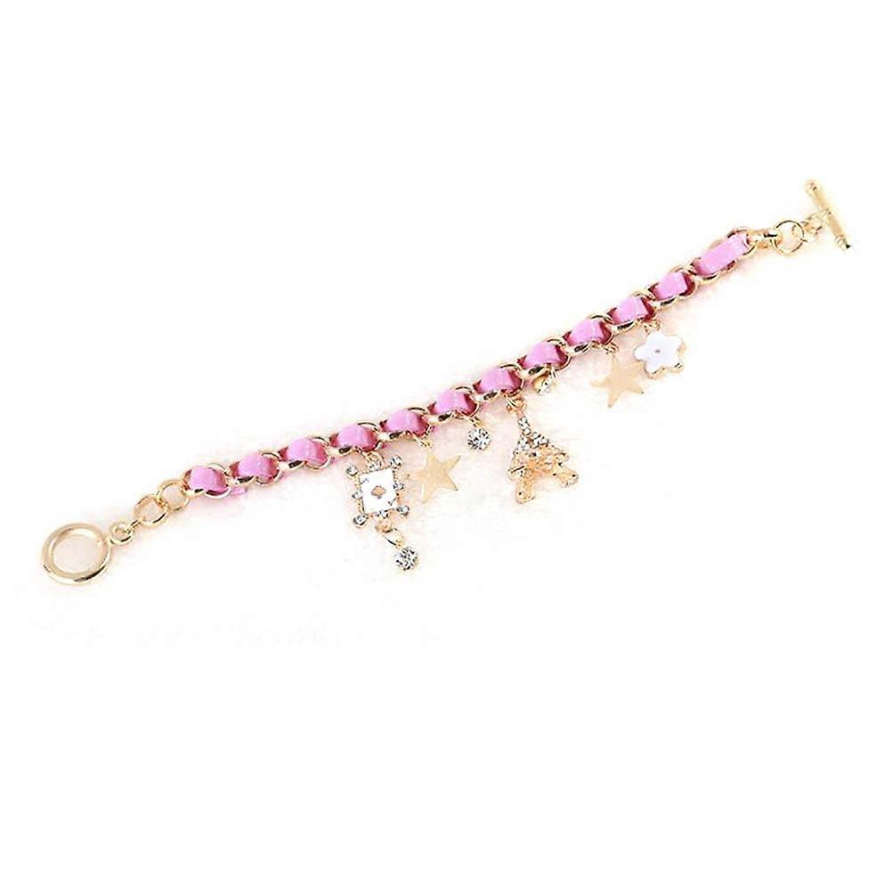 Charming Rope Eiffel Tower Crystal Bracelet for Women Party Wedding Bridal Jewelry (Pink)