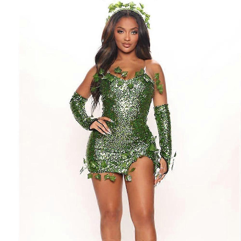 Enchanting Halloween Villain Poison Ivy Cosplay Costume Women's Sequin Dress Set For Carnival Party