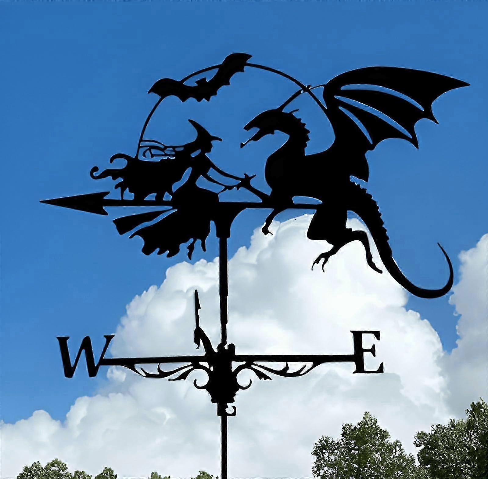 Decorative Metal Weather Vane With Witch And Dragon Design Retro Wind Direction Indicator Outdoor Garden Decor
