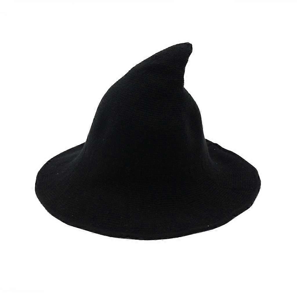 Witch Hat Wizard Kinitted-Wool Hats Adult Costume Party Accessory Halloween Masquerade Cosplay Caps for Ghost Party Black