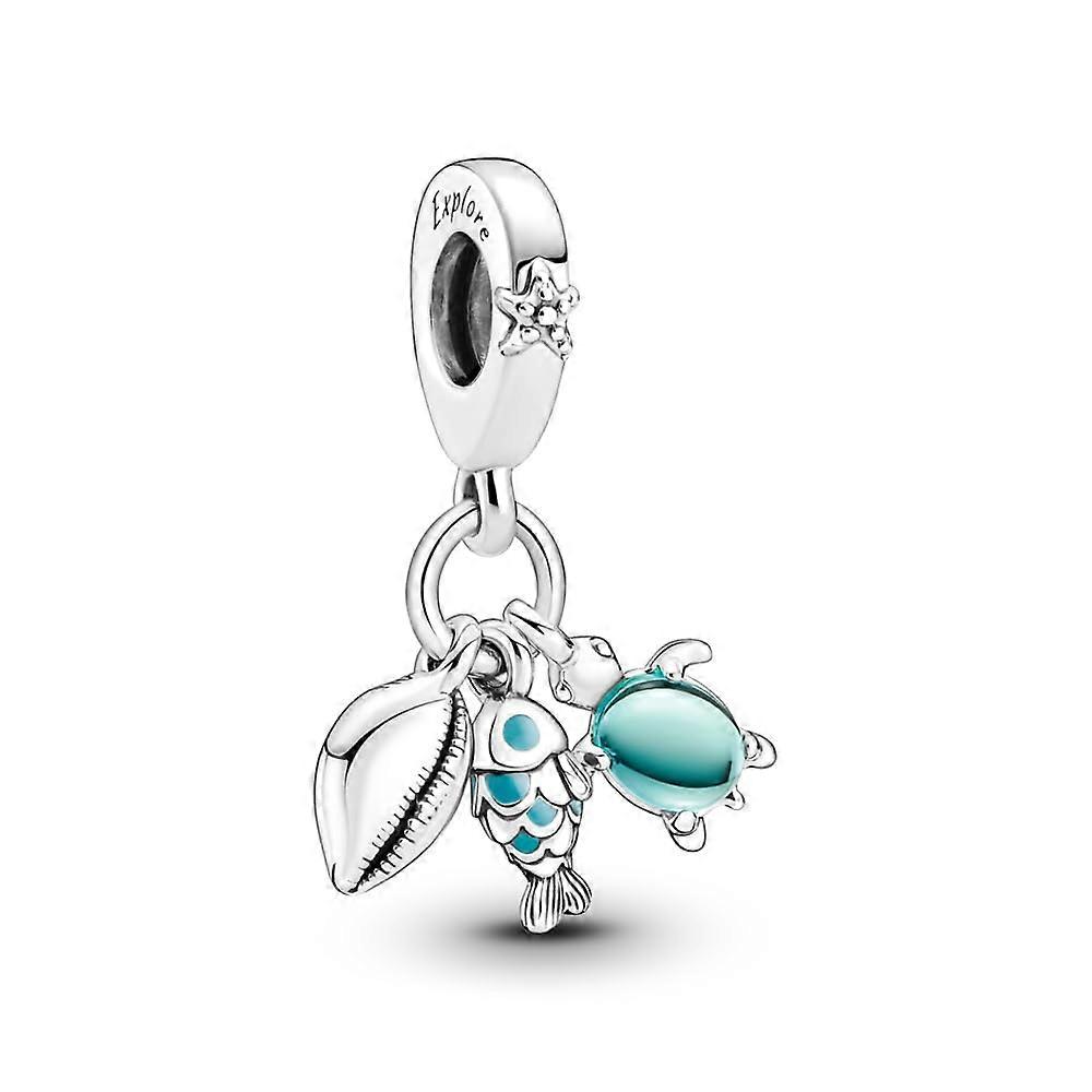 Fish, Sea Turtle and Conch Triple Dangle Attraction Bracelet Moments of Attraction Bracelets - Stunning Women Jewelry - Silver and Enamel