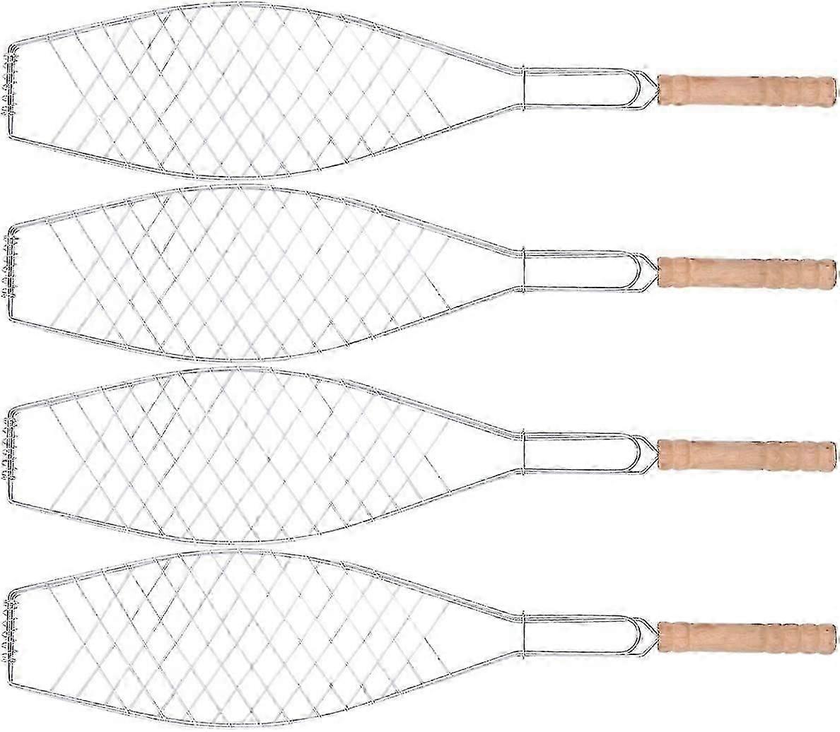 Set of 4 BBQ Foldable Fish Grill Basket with Removable Handle for Fish Meat Vegetables Shrimp