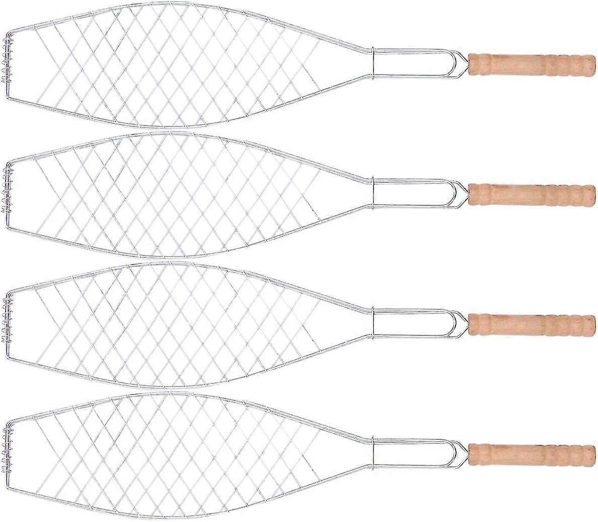 Set Of 4 Bbq Foldable Fish Grill Basket With Removable Handle For Fish Meat Vegetables Shrimp