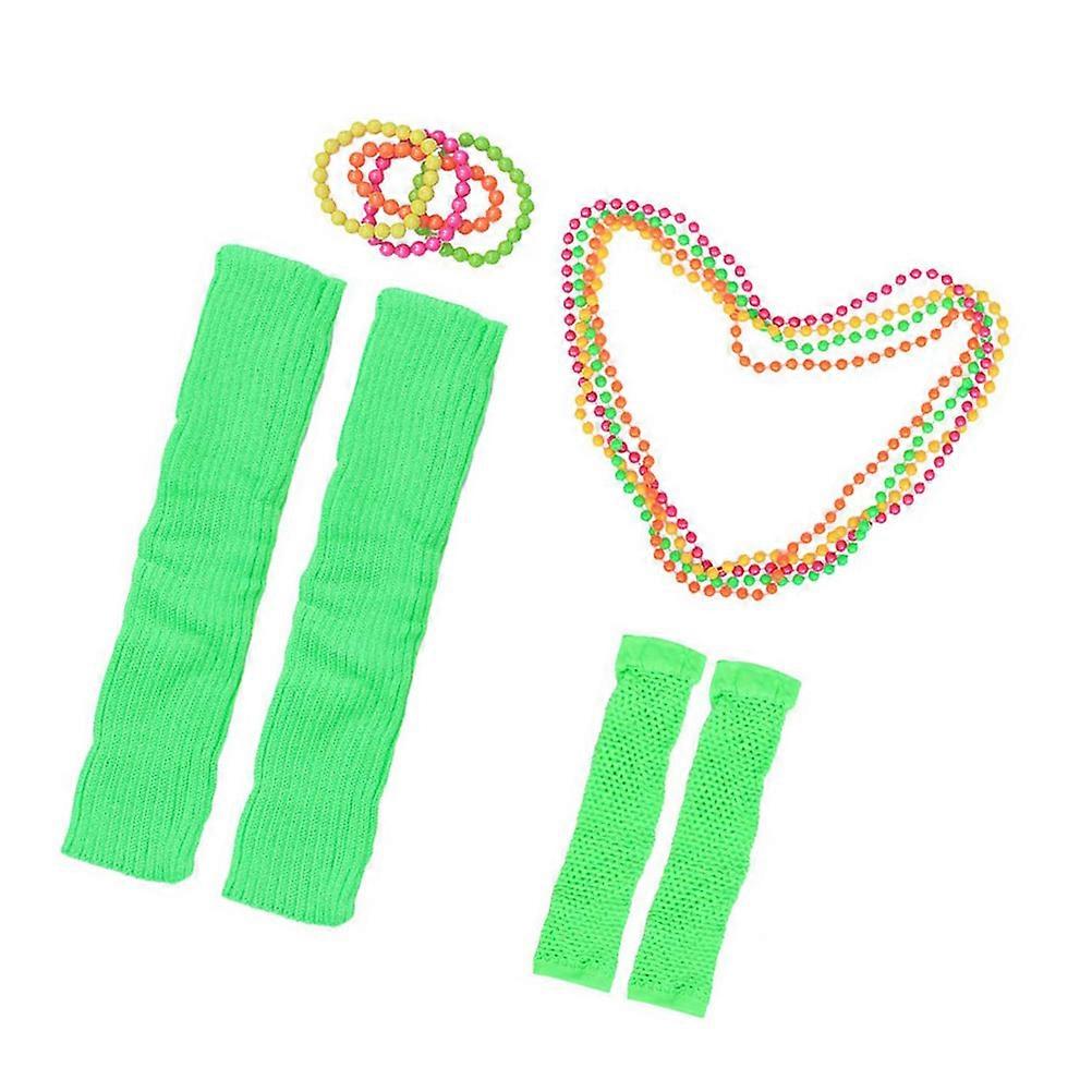 Vibrant 80S Style Costume Accessories Featuring Light Green Neon Necklace Bracelets Fingerless Gloves Leg Sleeves For Dance Show