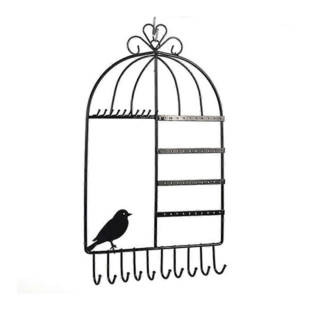 Birdcage Shaped Earrings Necklace Jewelry Copper Plated Display Stand Rack Holder Wall Mounted (Black)