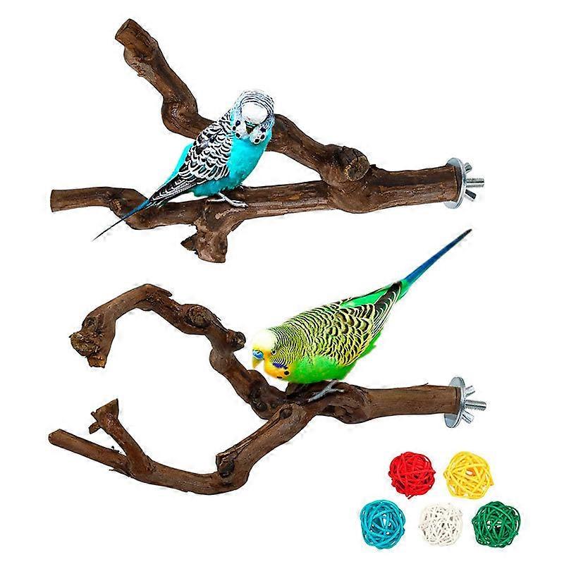 Bird Cage Natural Bird Perch, Bird Grinder, Standing Bird Cage Accessories, 2 Branches, 5 Takraw Balls, For Budgerigars, Cockatiels, Canaries