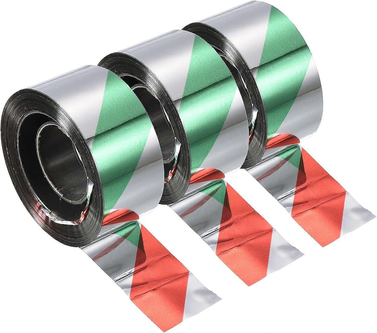Bird Reflective Scare Tape, 3 Pack 164ft x 0.9" PET Double Sided Repelling Ribbon Keep Away Bird for Garden Farm Home, Red Green Silver