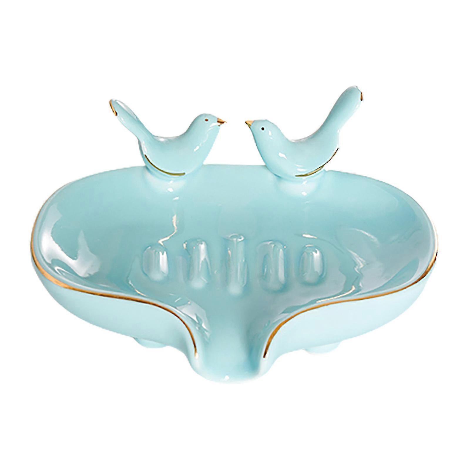 Bird Shape Ceramic Soap Dish Holder, Self-Draining Soap Tray for Bathroom Kitchen Shower