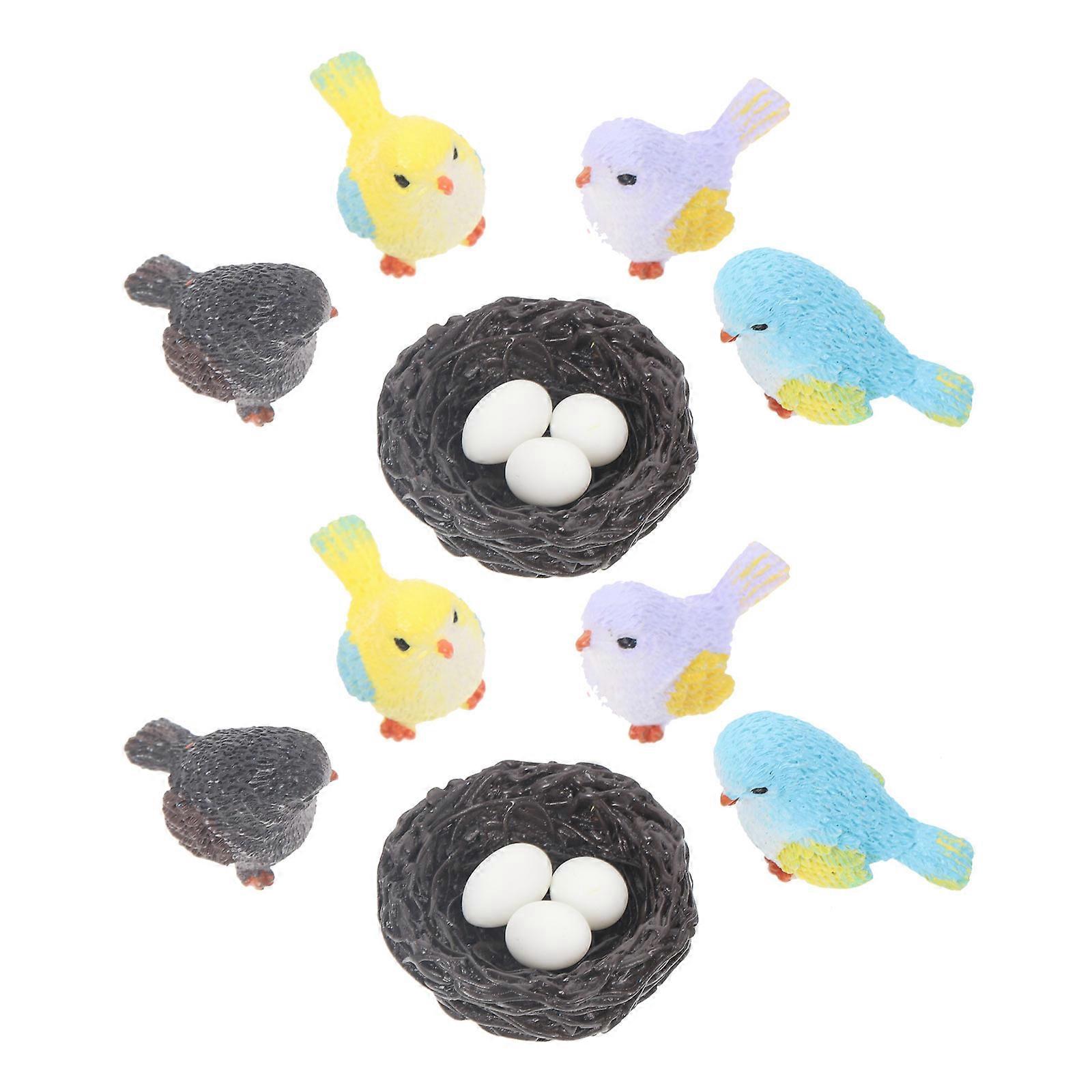 Bird Figurines Decor Microlandscape Ornaments Indoor Decor Assorted Color 2.5x2.2cm Miniature Design 2Set
