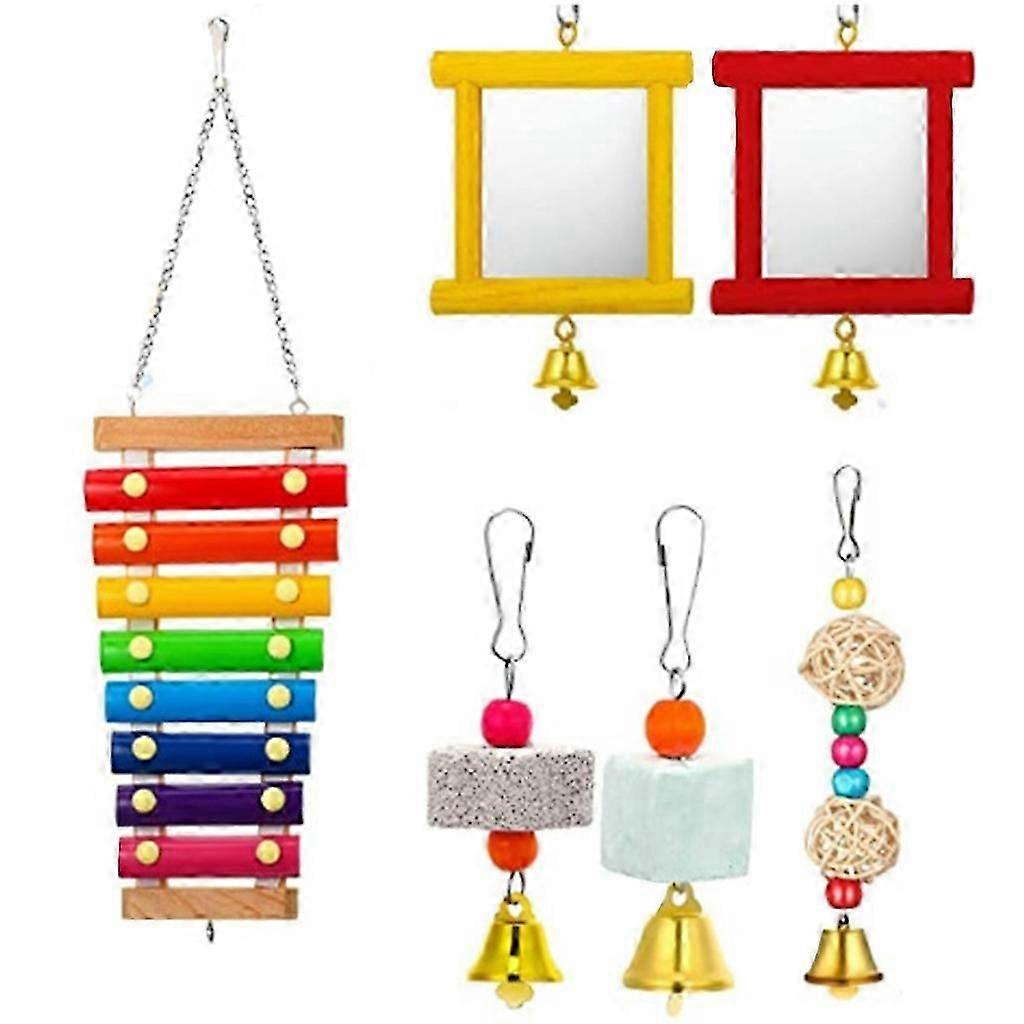 Bird Mirror Toy Colorful Ladder Molar Toy Bite Resistant Parrot Training Toy