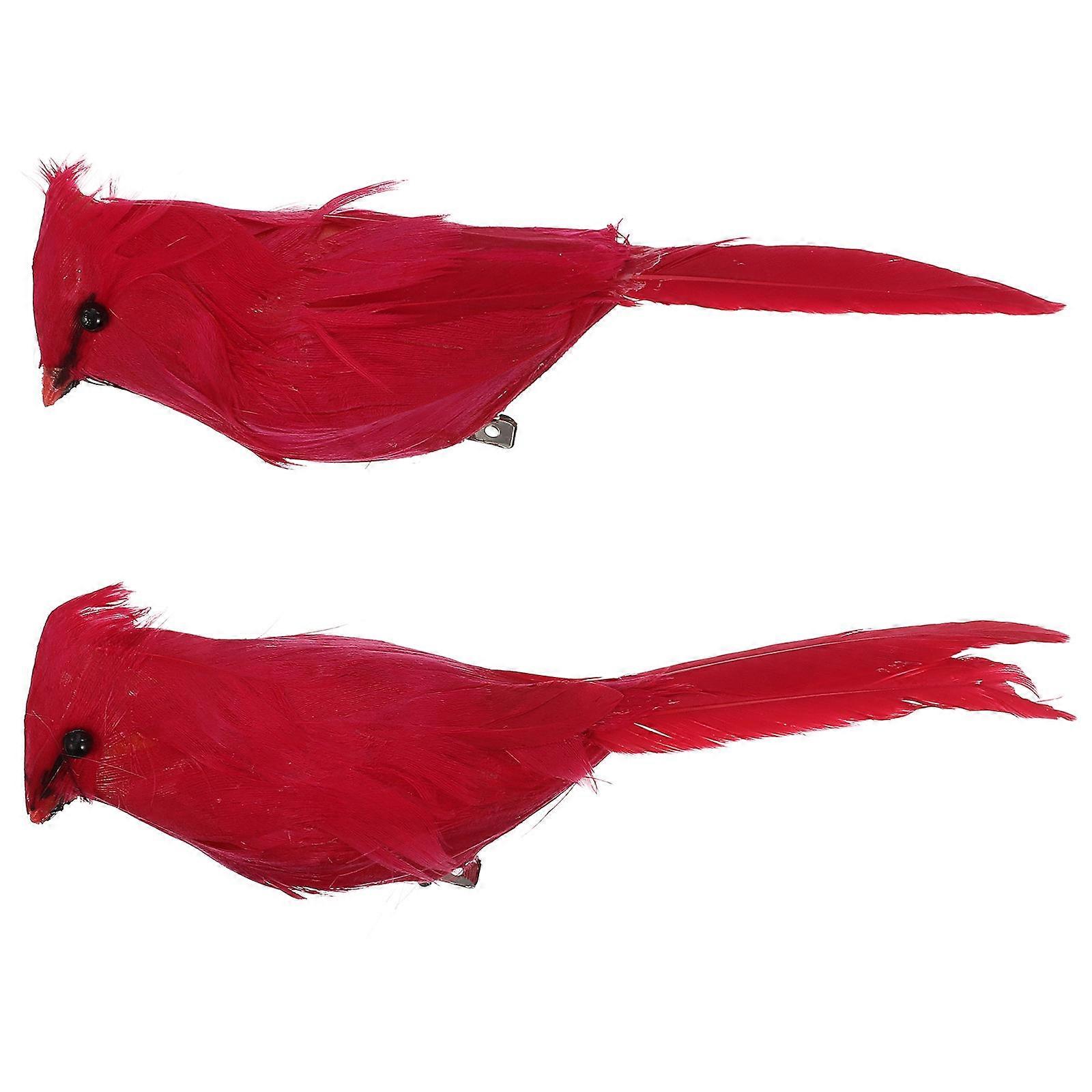 Bird Ornaments Dark Red 12X3.5X3CM Foam Feathered Wings Bird Shape Garden Ornament For Craft Enthusiasts 2Pcs
